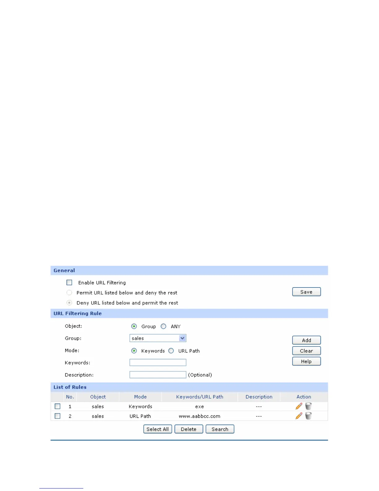 Select the mode for URL Filtering. “Keyword’’ indicates that all the