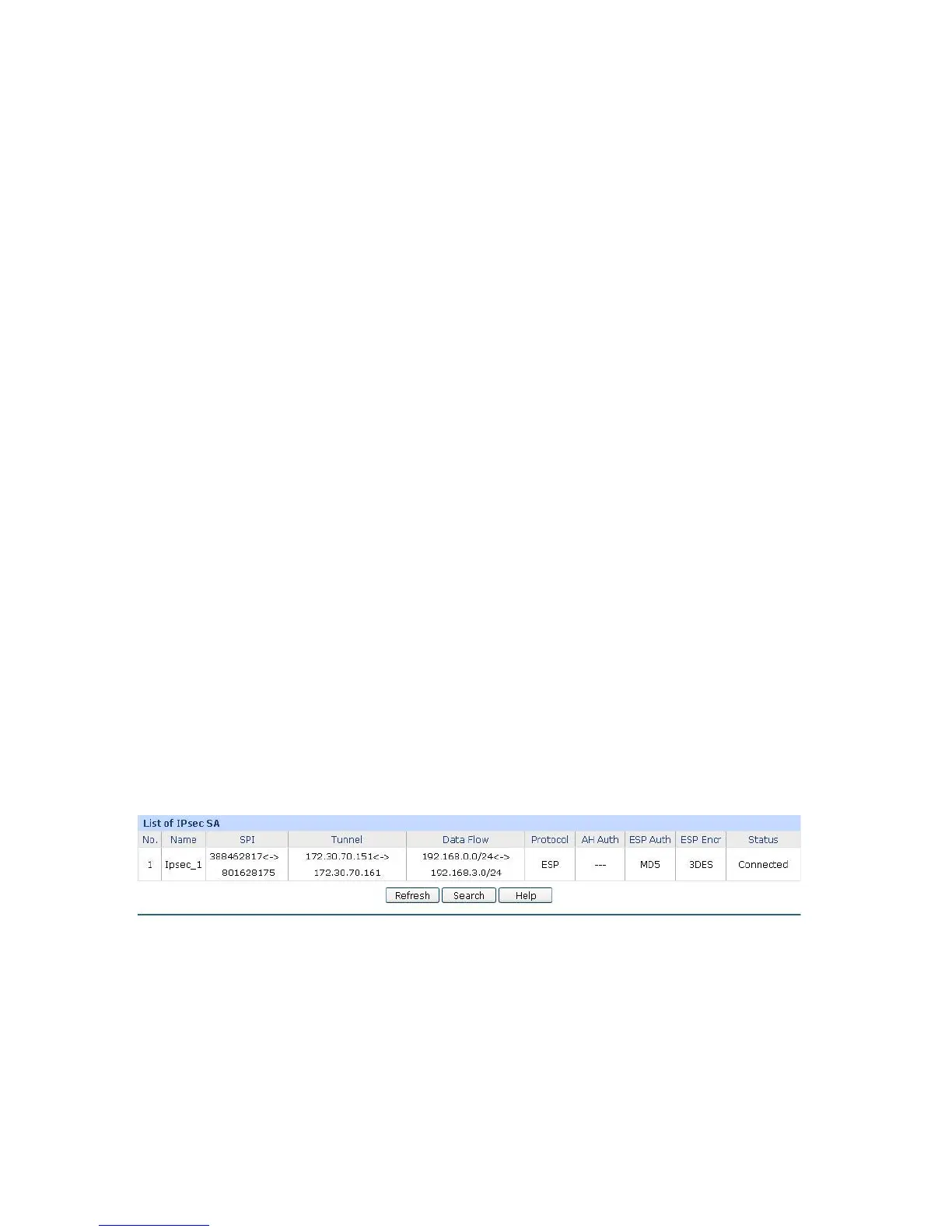 This page displays the information of the IPsec SA (Security Association).