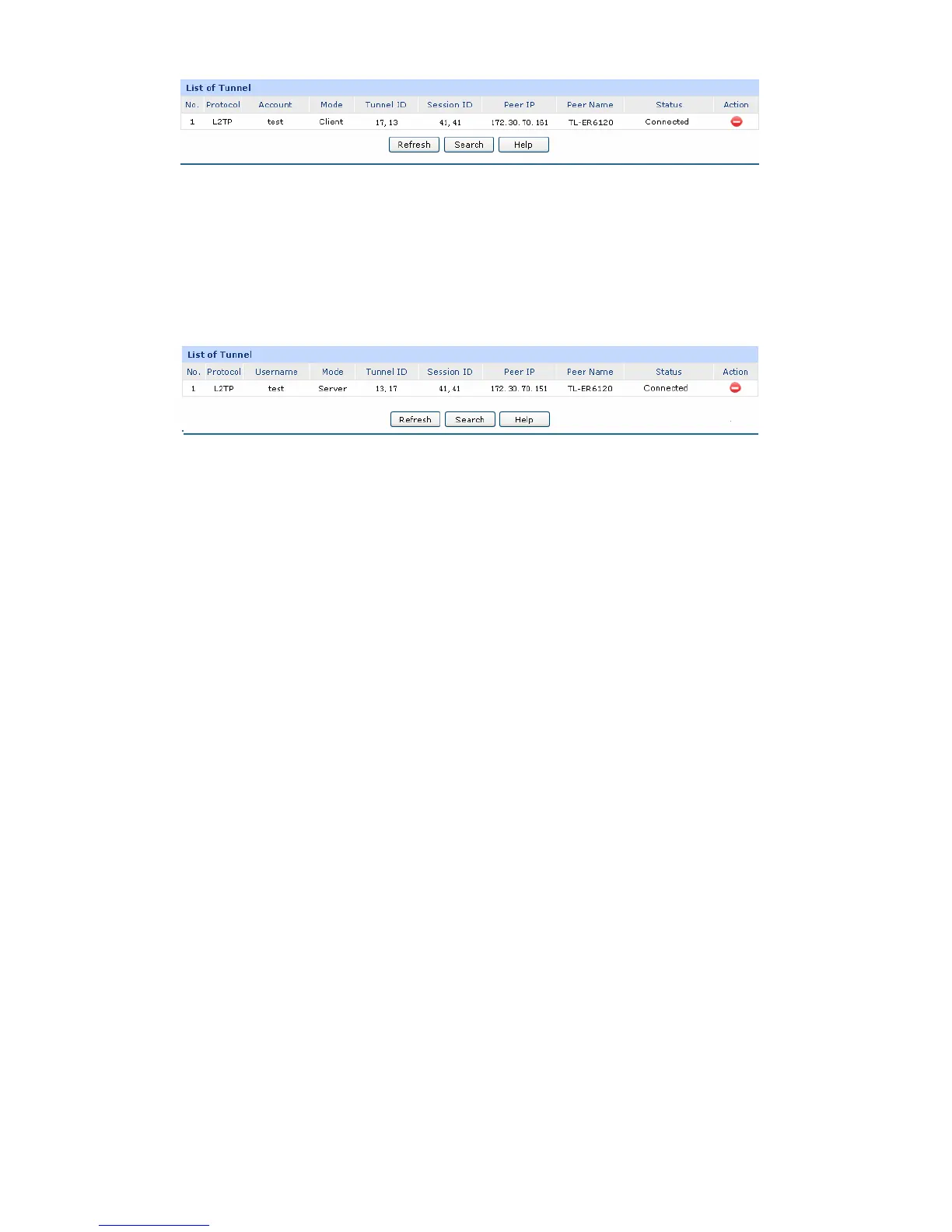 in client corresponds to that in server. The connection information of this tunnel in the server is shown