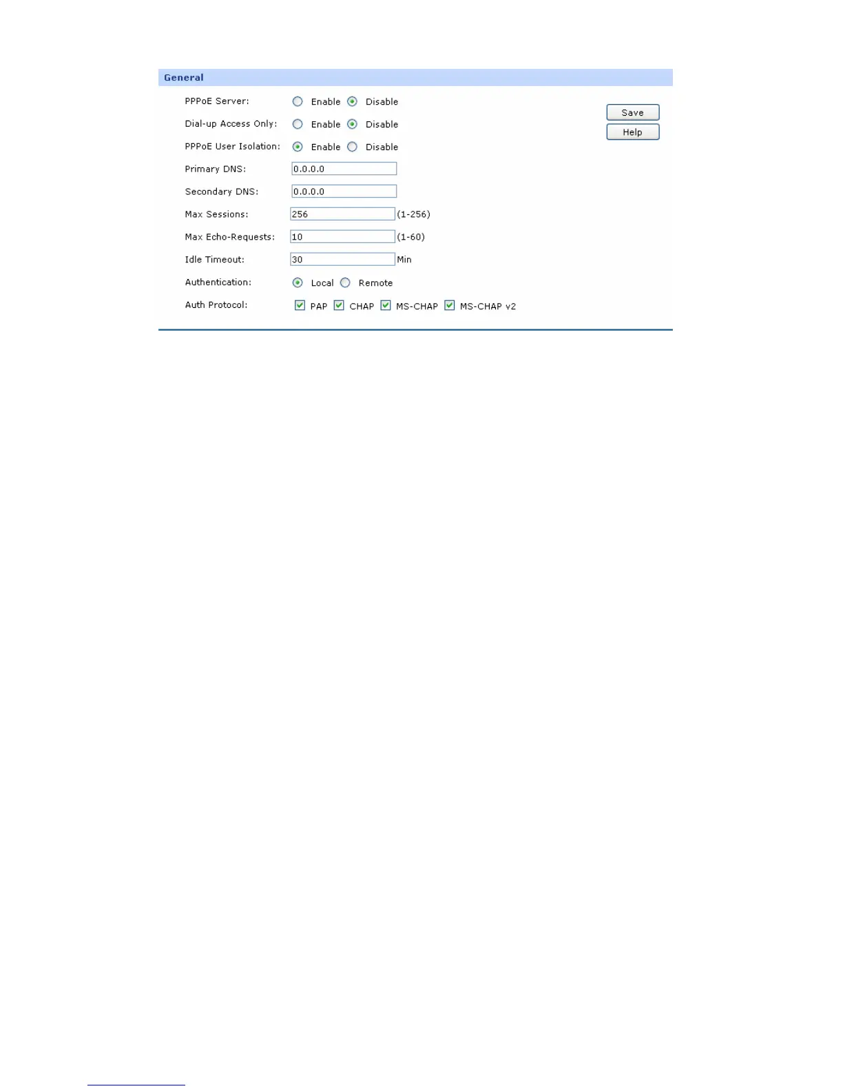 Specify whether to enable the PPPoE Server function.
