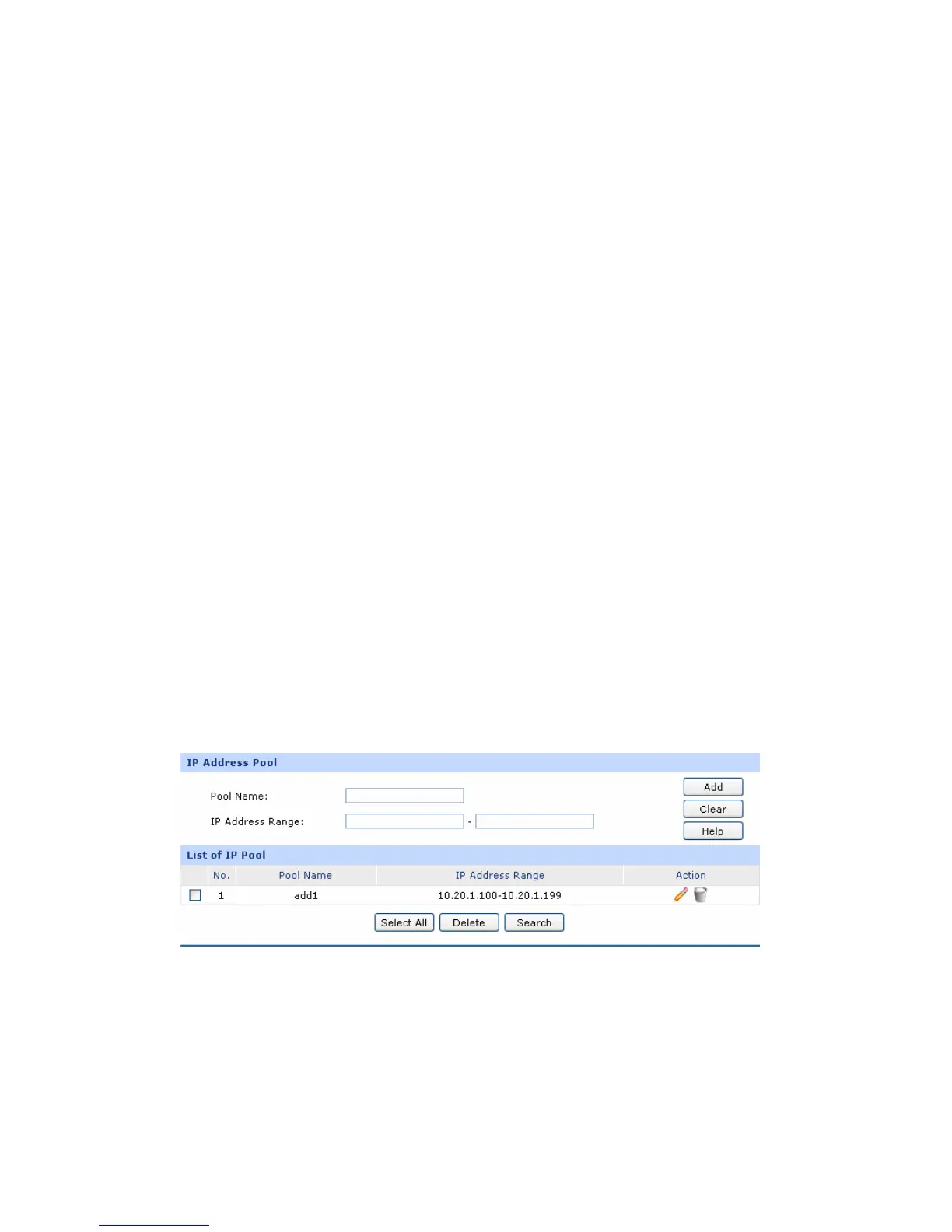 Choose the menu Services→PPPoE Server→IP Address Pool to load the following page.