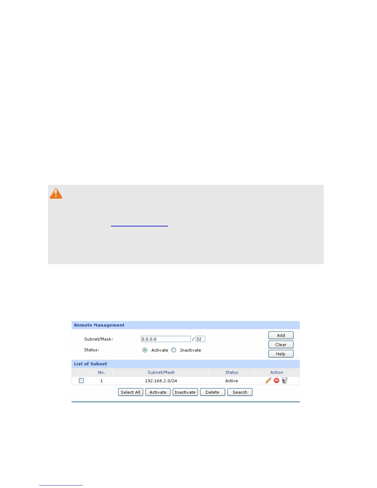 On this page you can configure the Remote Management function. This feature allows managing your