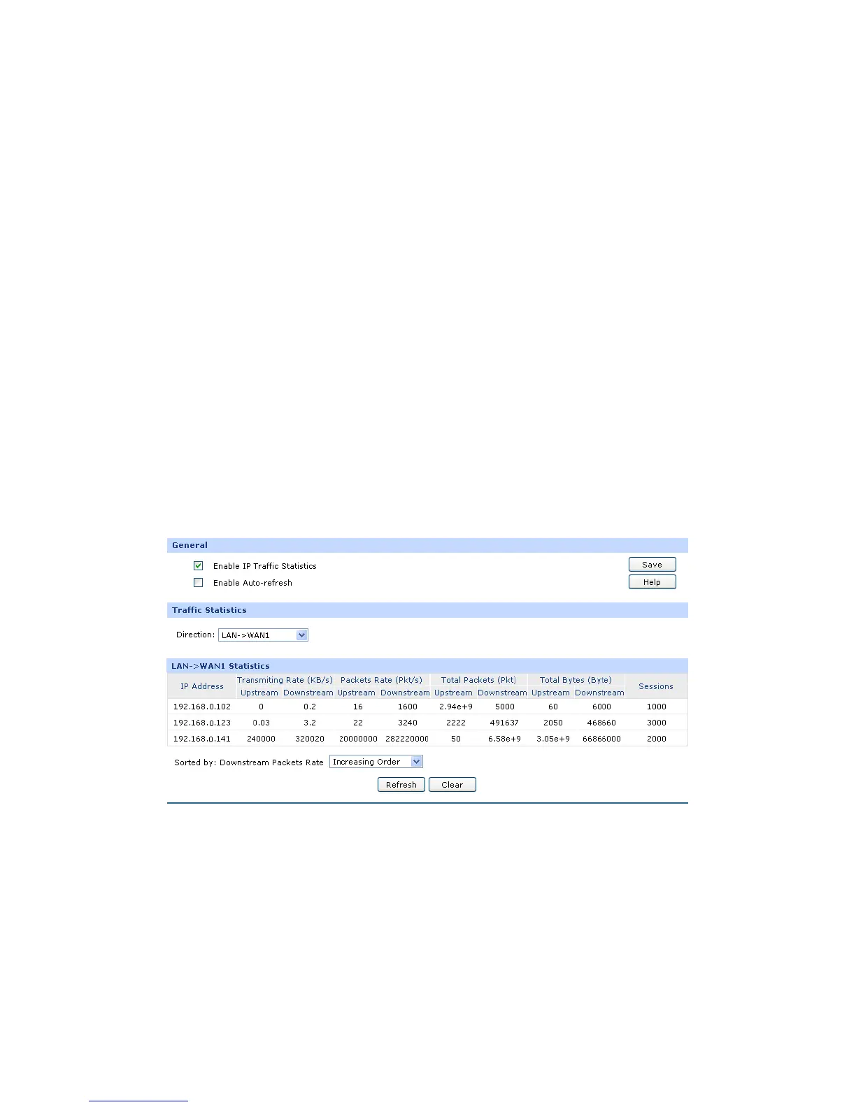 Choose the menu Maintenance→Statistics→IP Traffic Statistics to load the following page.