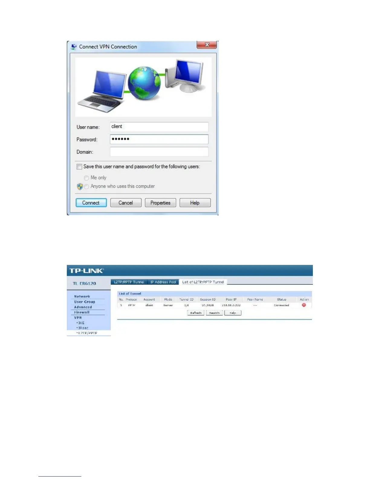 If the PPTP tunnel is established successfully, you can check it on List of Tunnel.
