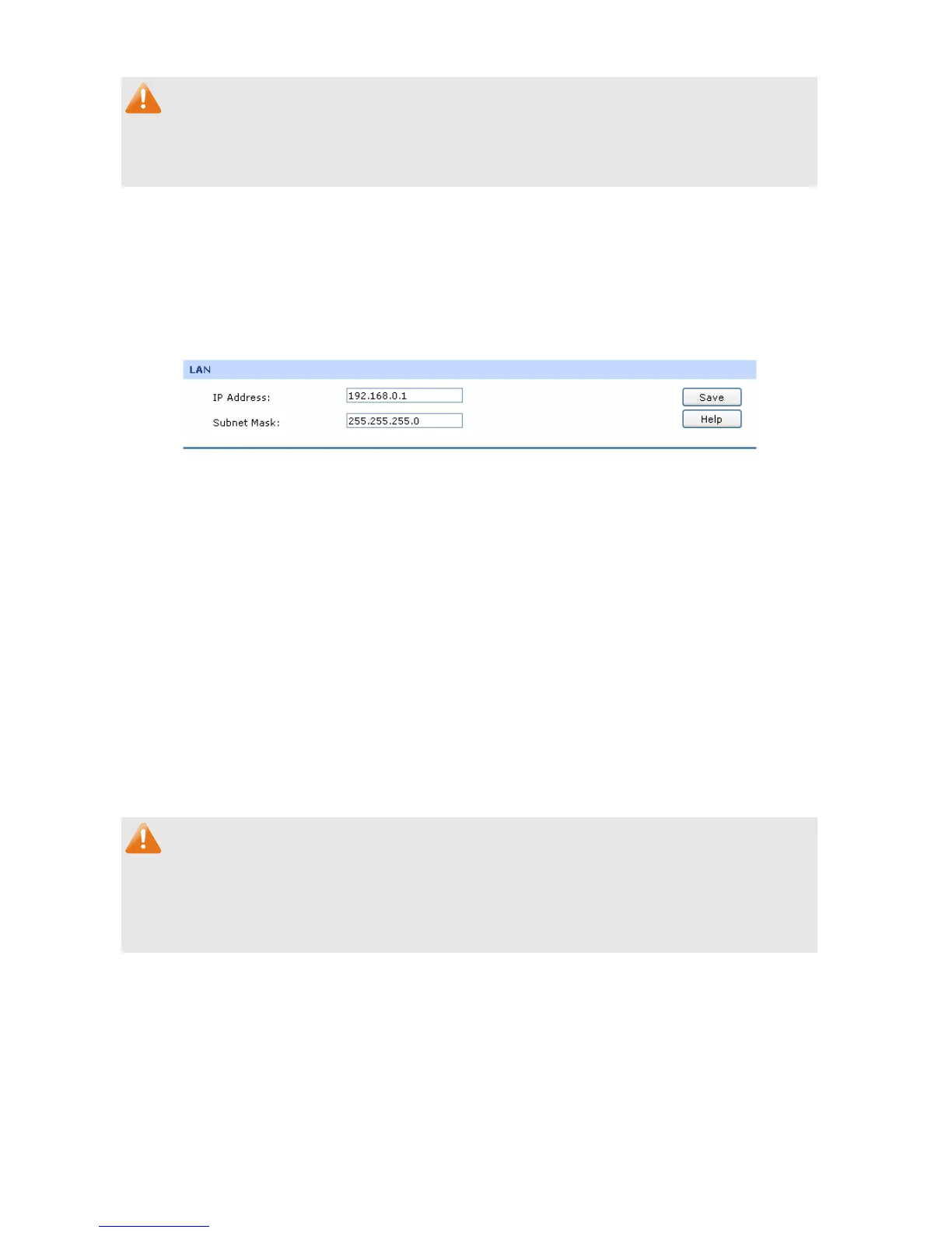 Hosts on the LAN to the new LAN IP address and the Subnet Mask of the Router.