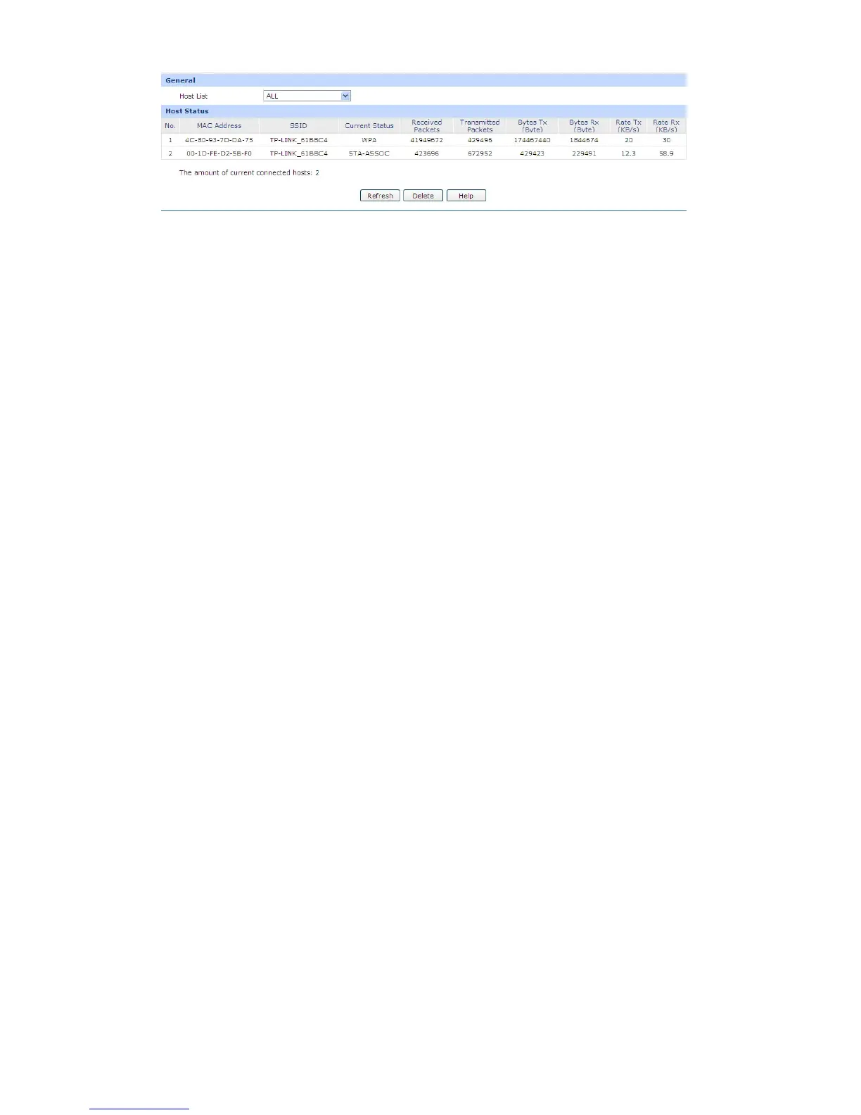MAC Address: Displays the MAC address of the host which access the Router by wireless