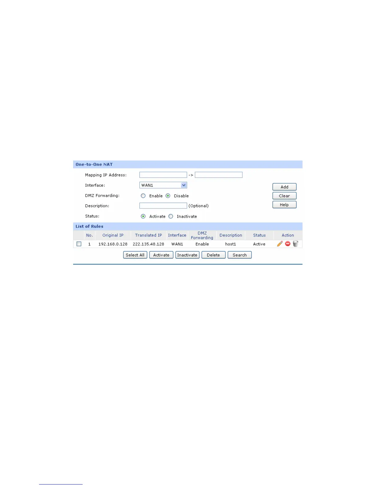 Choose the menu Advanced→NAT→One-to-One NAT to load the following page.