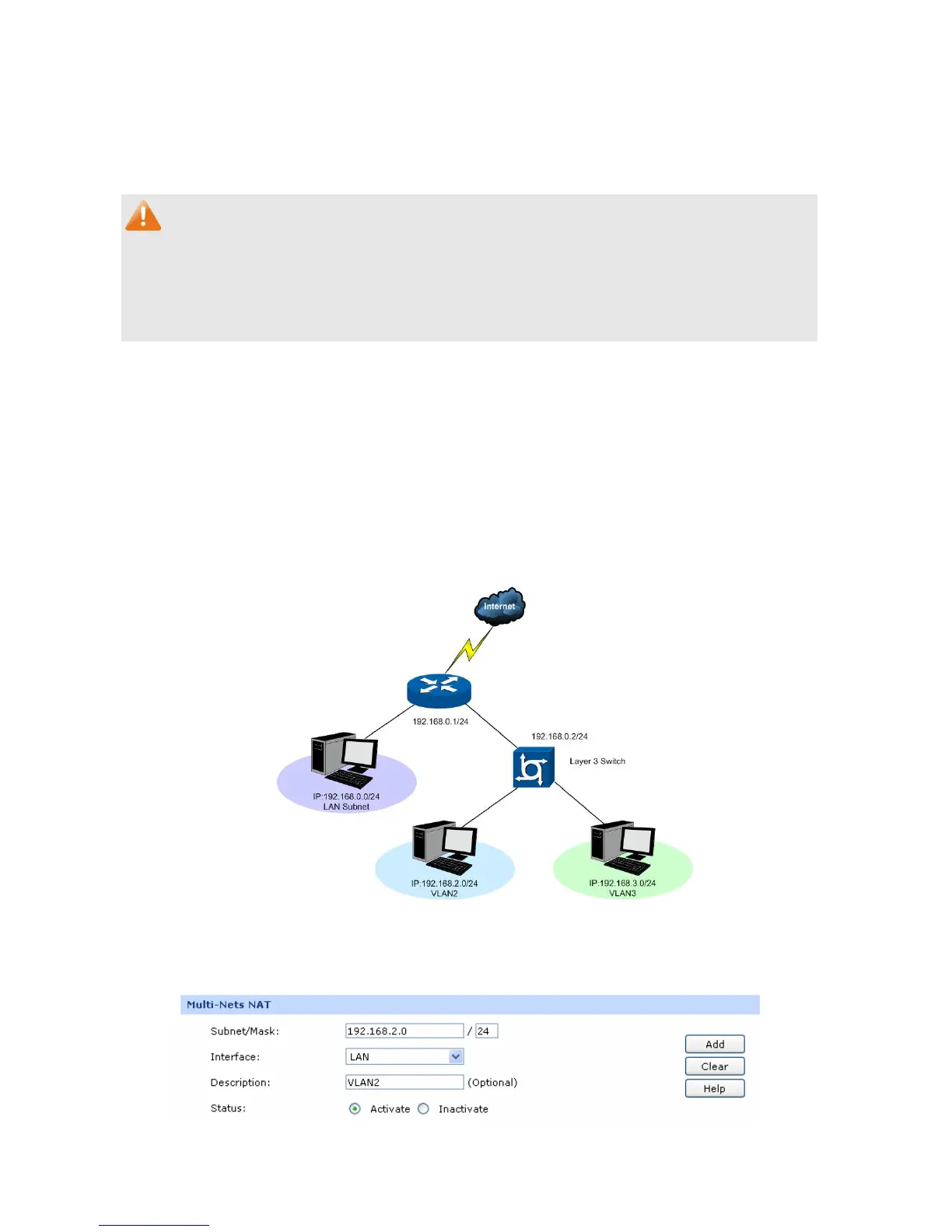 ● Multi-Nets NAT entry takes effect only when cooperating with the corresponding Static Route