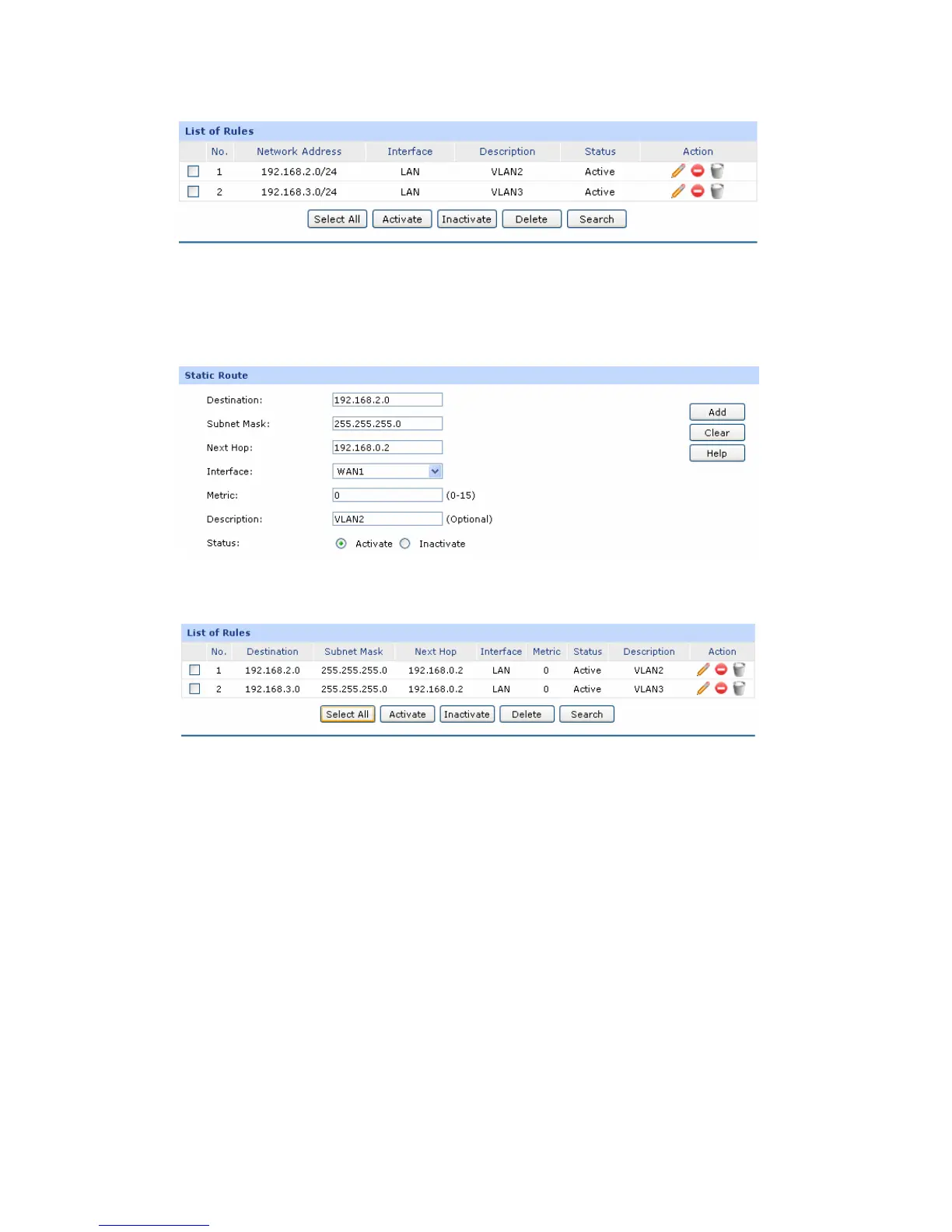 Choose the menu Advanced→Routing→Static Route to load the following page.