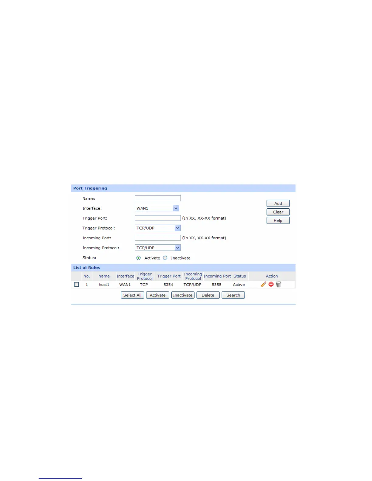 Enter the trigger port number or the range of port. Only when the
