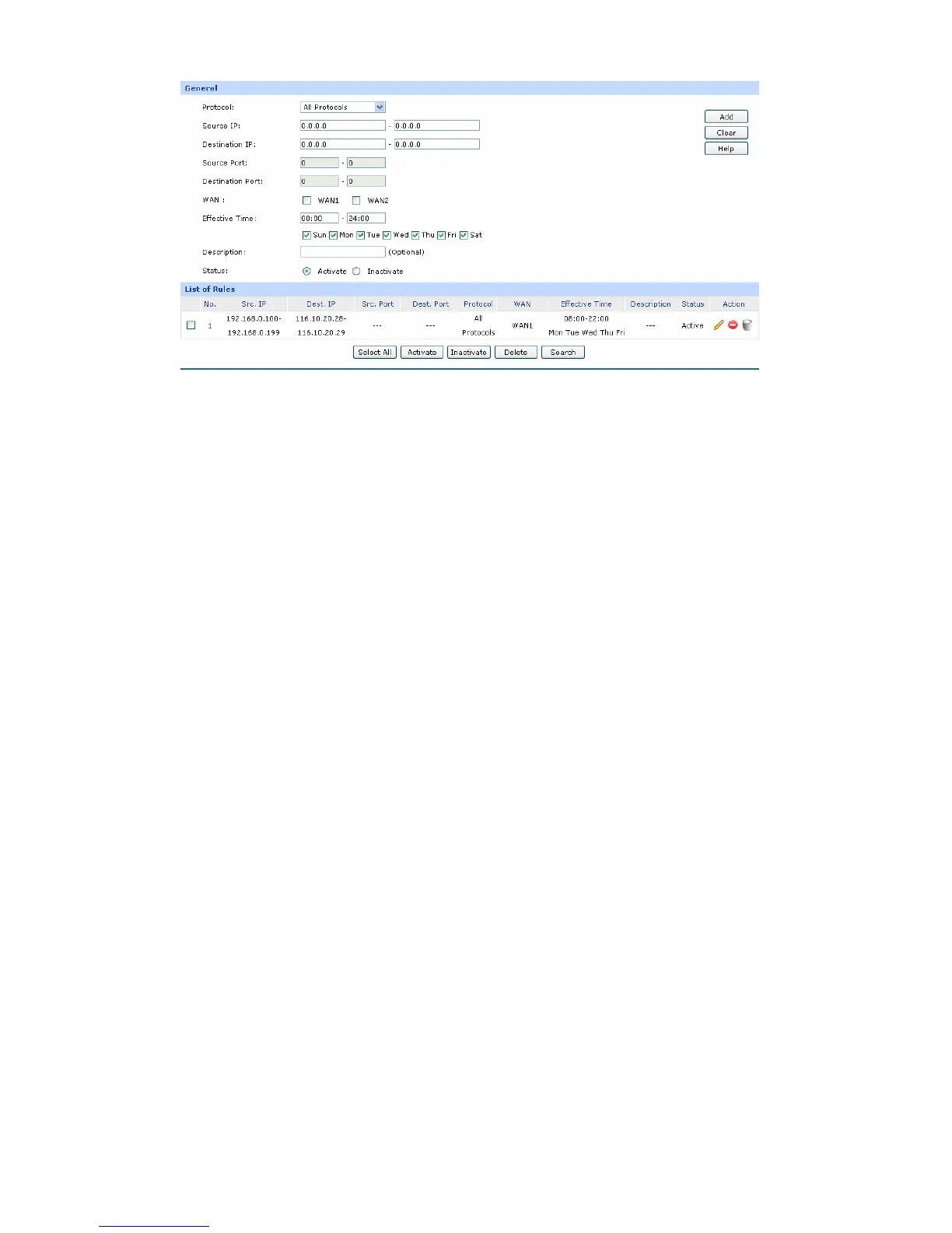 Enter the source Port range for the entry, which is effective only when the