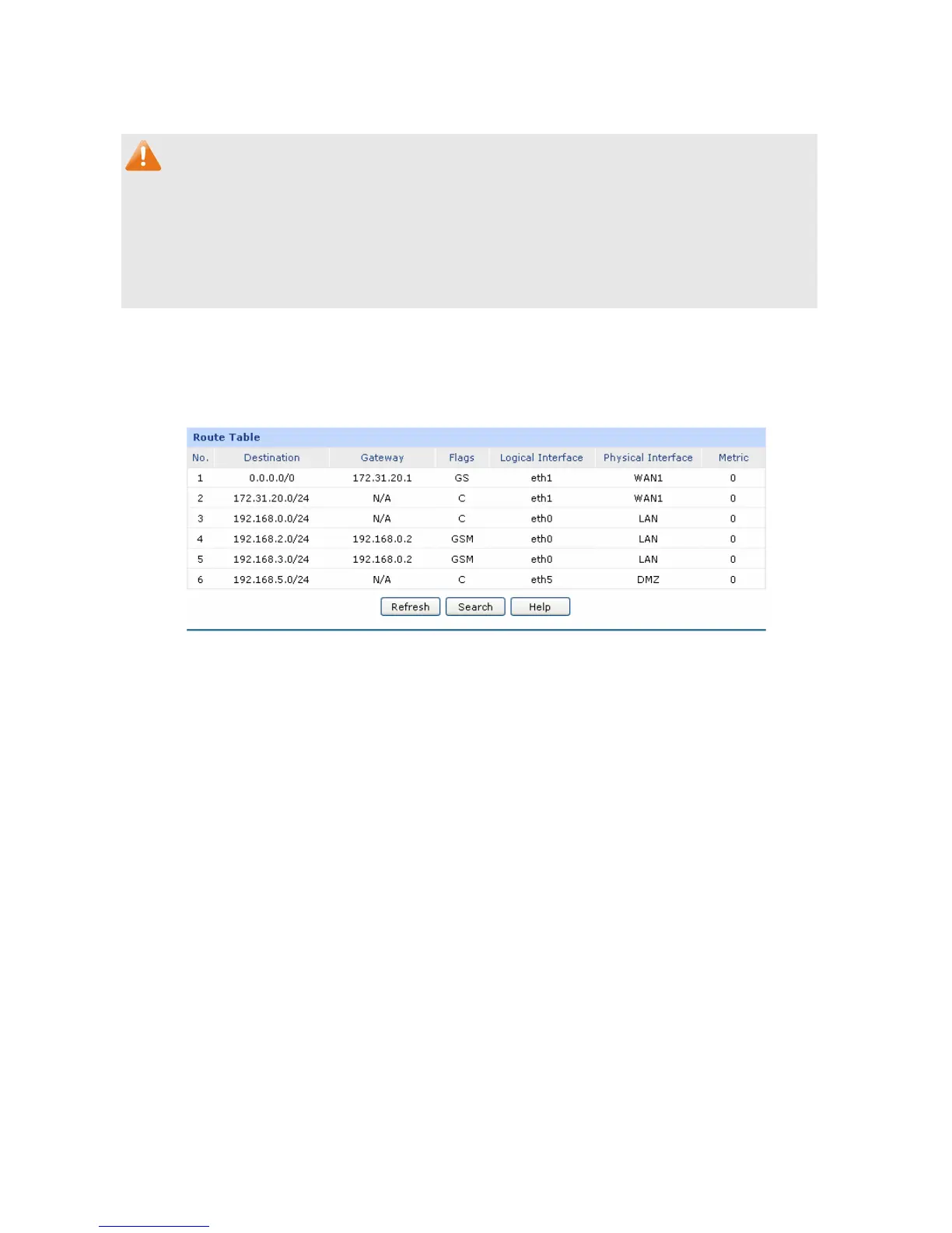 Choose the menu Advanced→Routing→Route Table to load the following page.