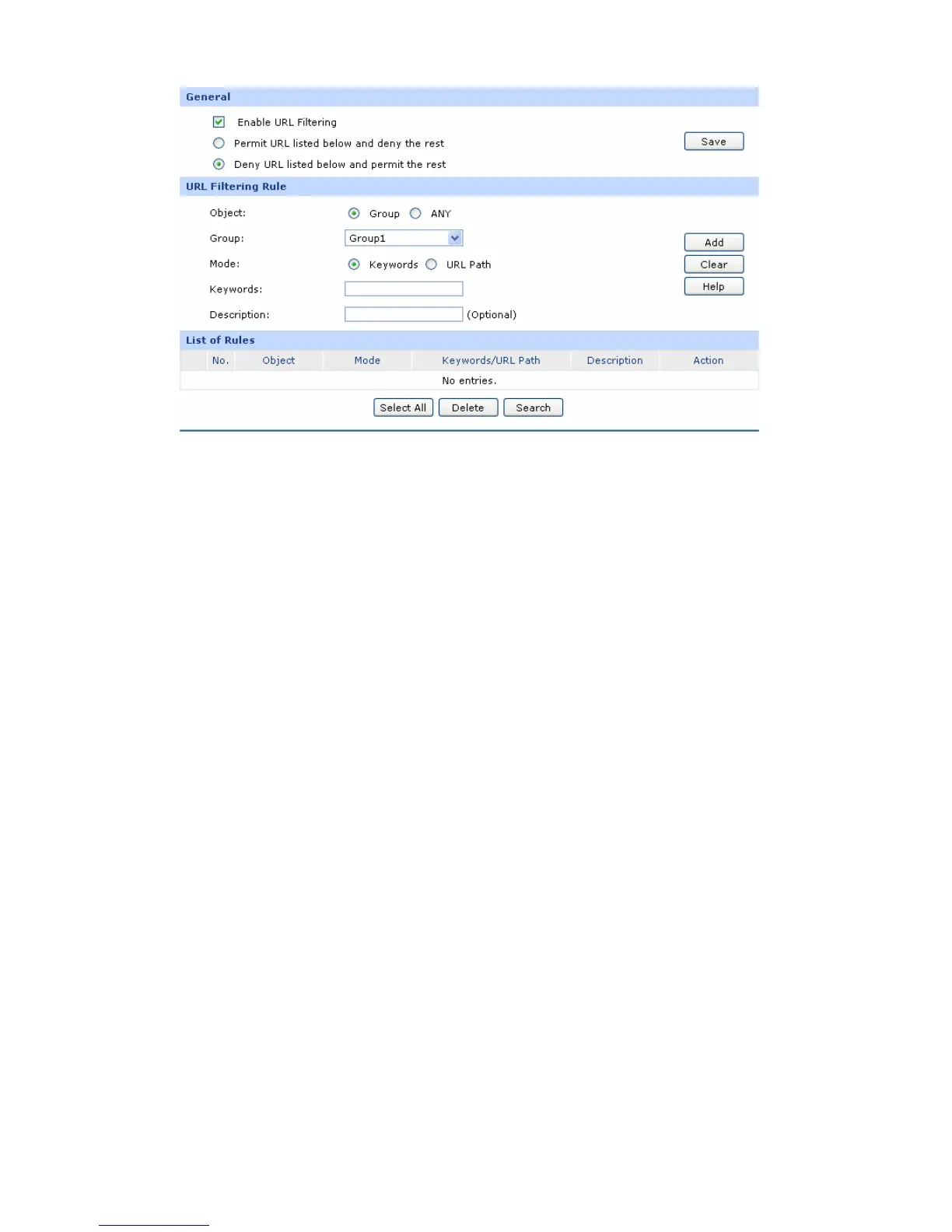 Select the mode for URL Filtering. “Keyword’’ indicates that all the