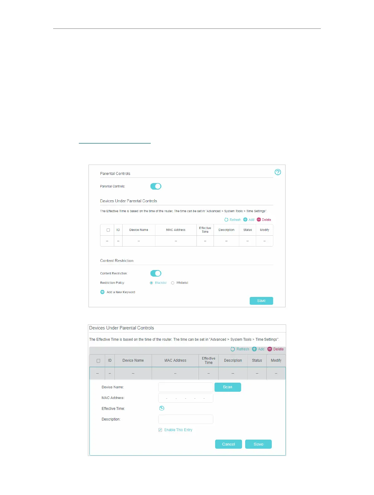 2. Go to Basic or Advanced > Parental Controls and enable Parental Controls.