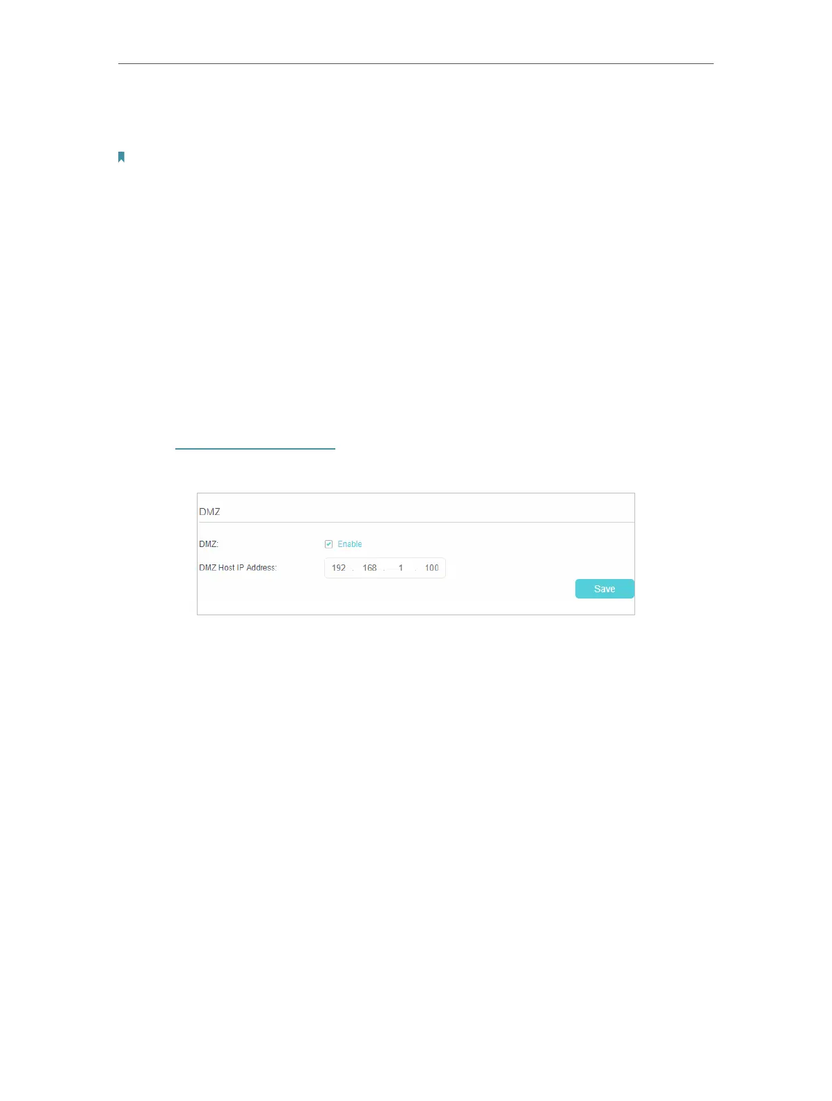 4. Enter the IP address 192.168.1.100 in the DMZ Host IP Address filed.