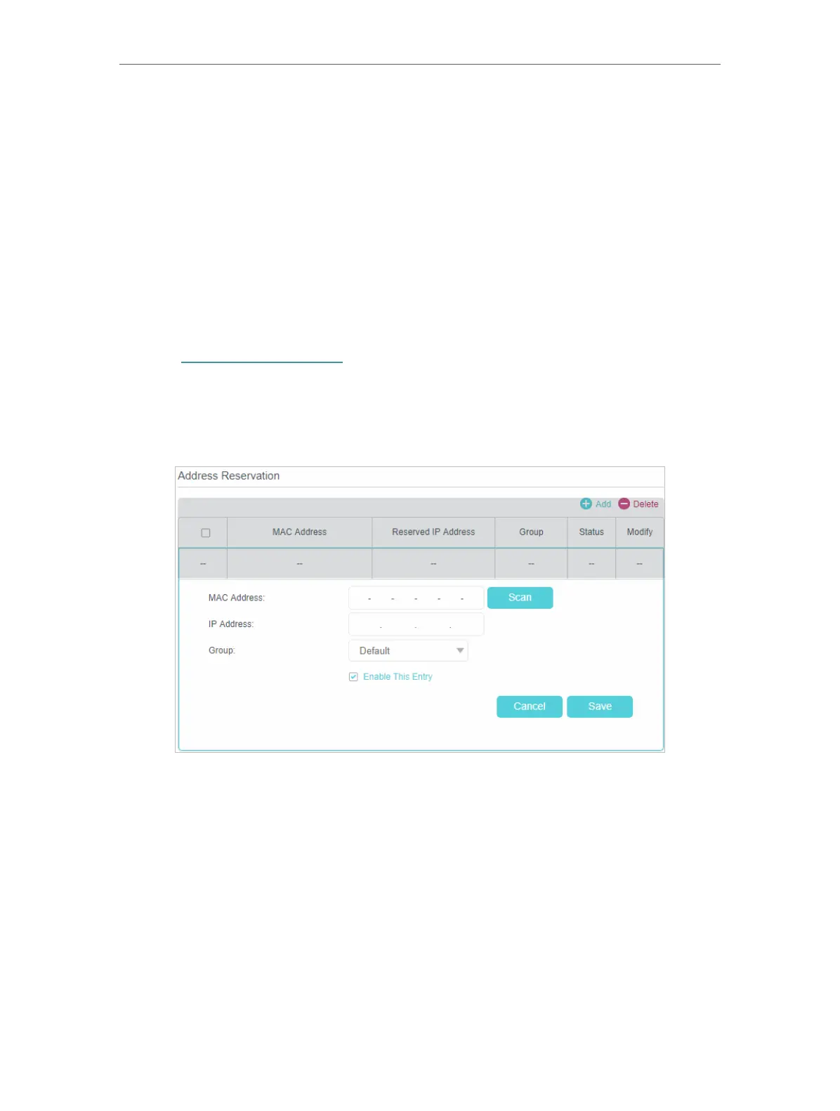 3. Scroll down to locate the Address Reservation table and click Add to add an address