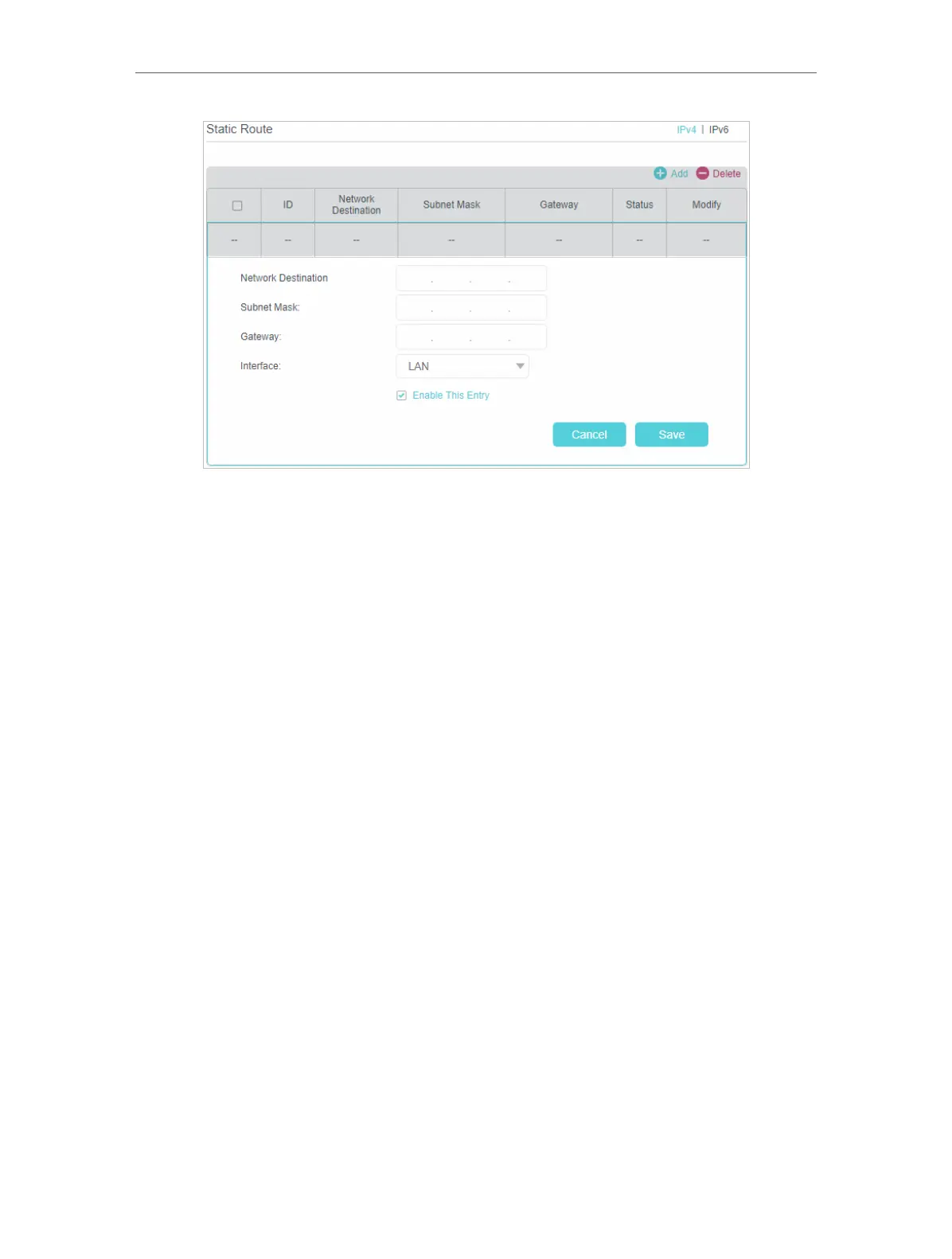 static route. This IP address cannot be on the same subnet with the WAN IP or