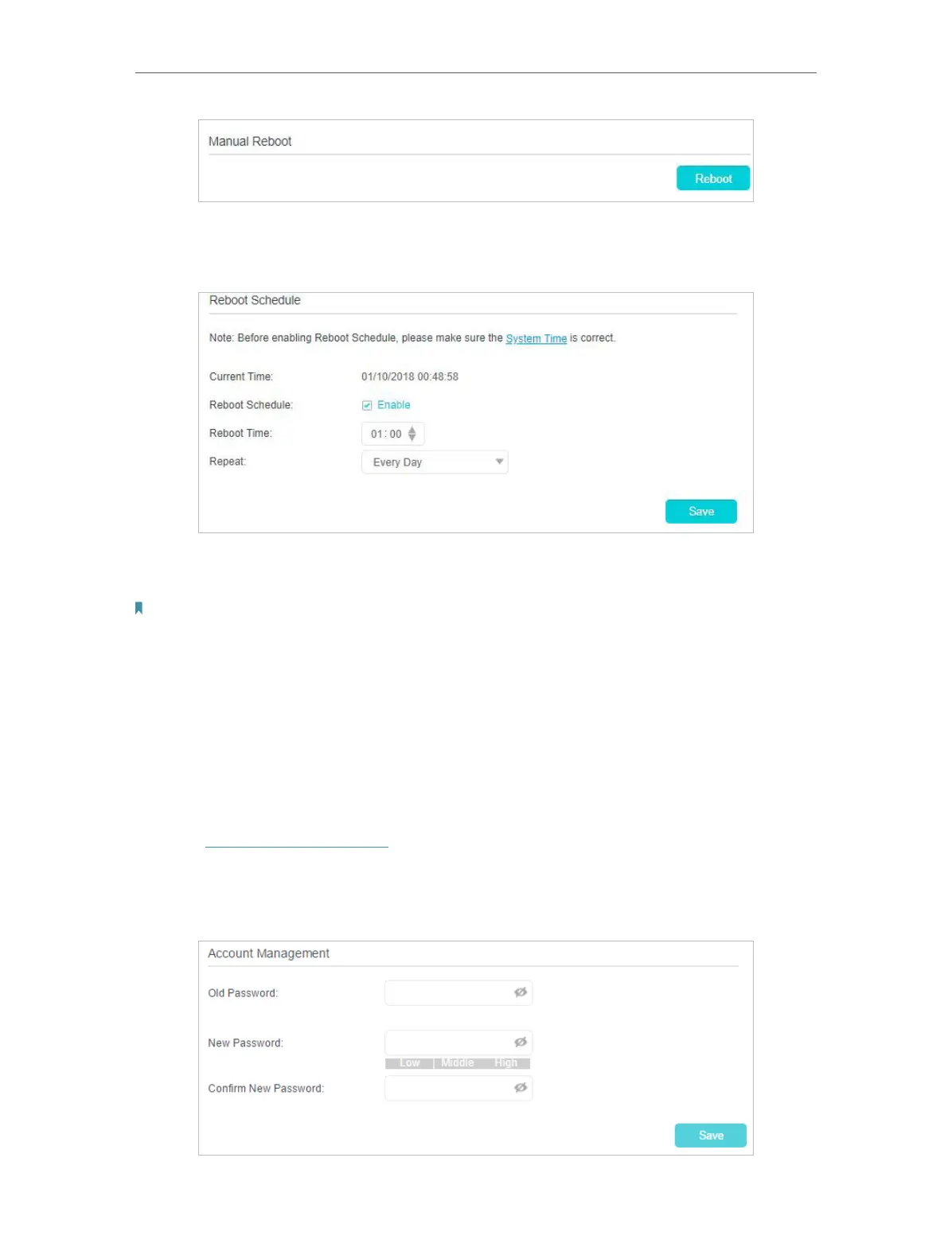 2. Specify the Reboot Time when the router reboots and Repeat to decide how often