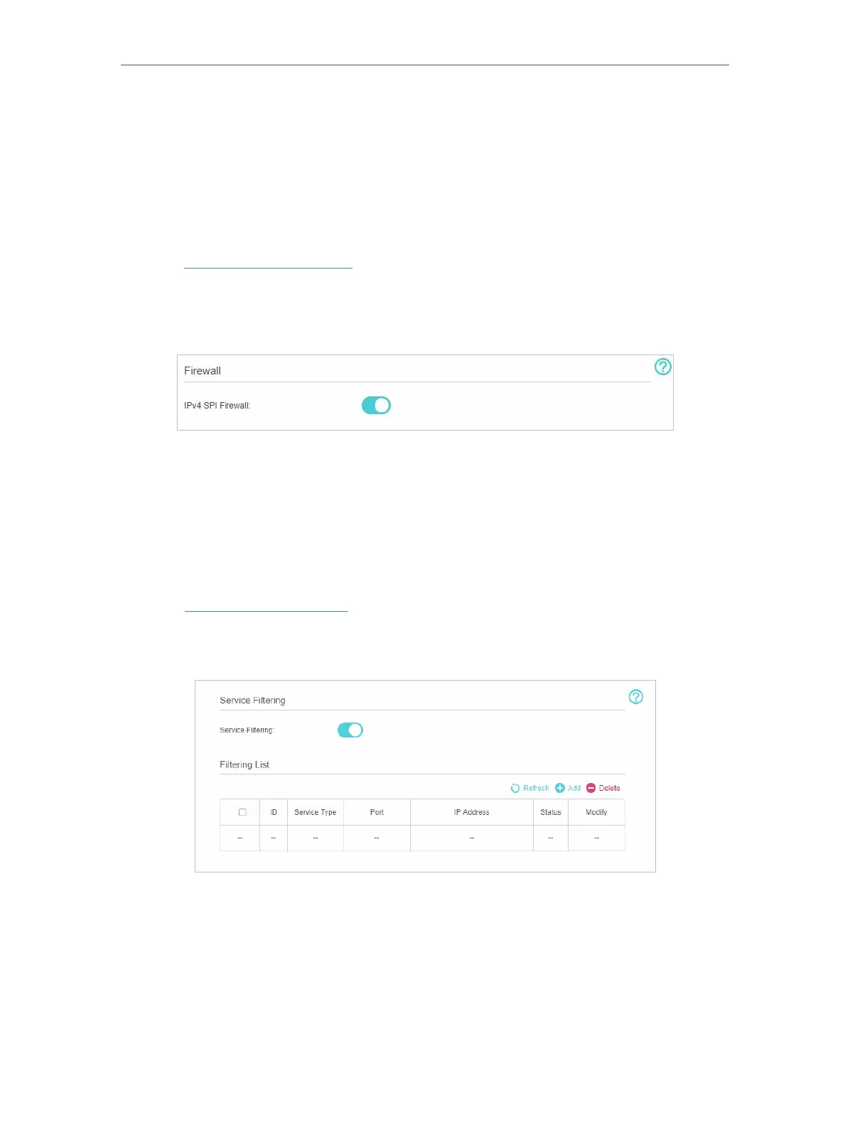 2. Go to Advanced > Security > Service Filtering and enable Service Filtering.
