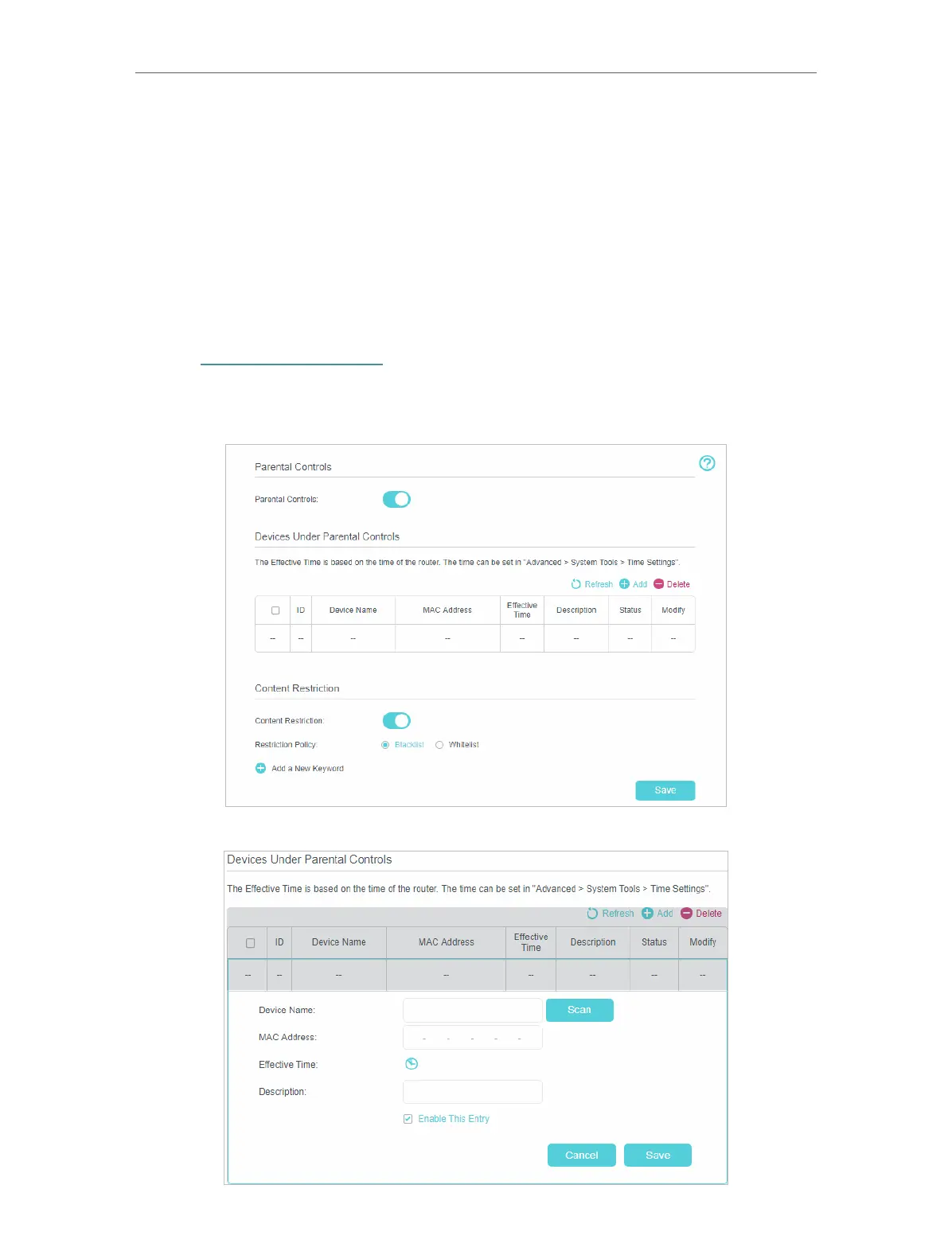 2. Go to Basic or Advanced > Parental Controls and enable Parental Controls.