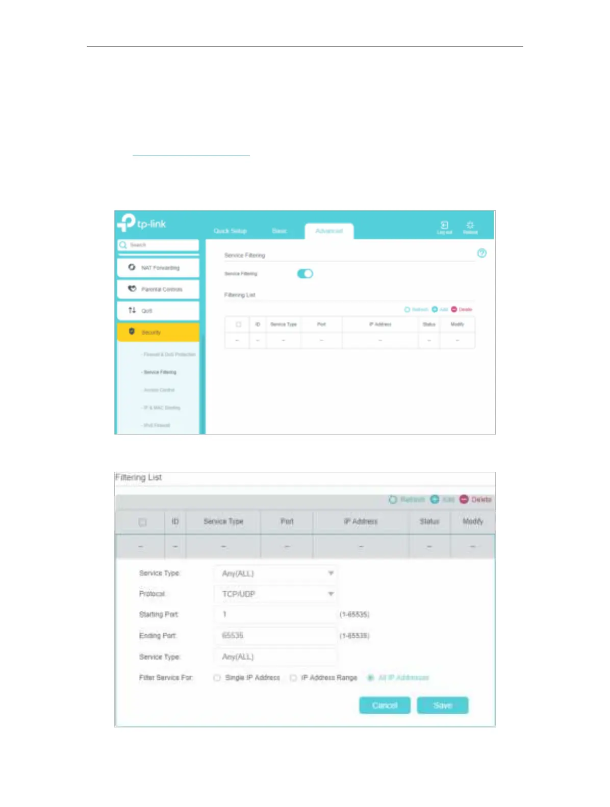 TP-Link TL-MR150 - Service Filtering