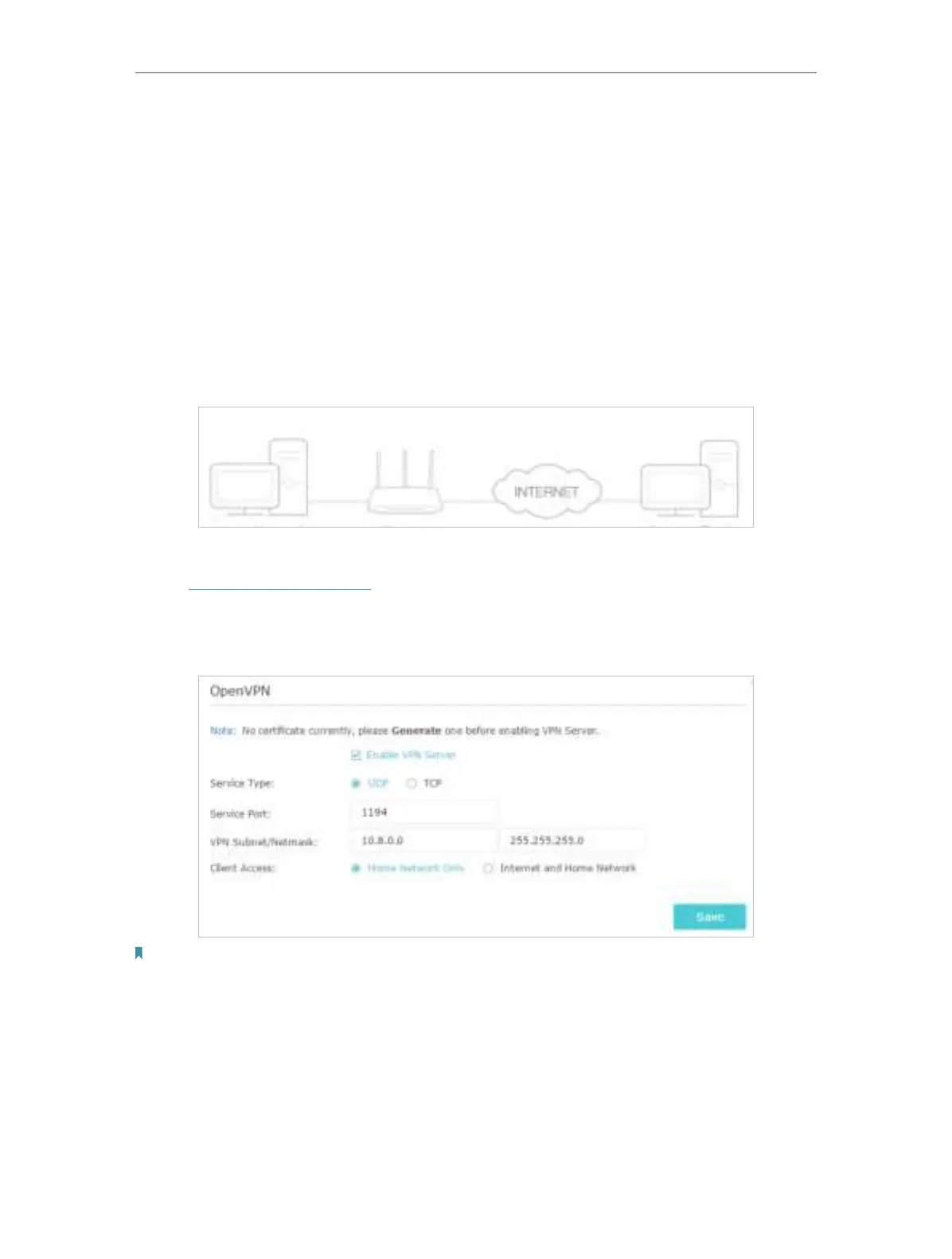 • The first time you configure the OpenVPN Server, you may need to Generate a certificate before you enable the VPN