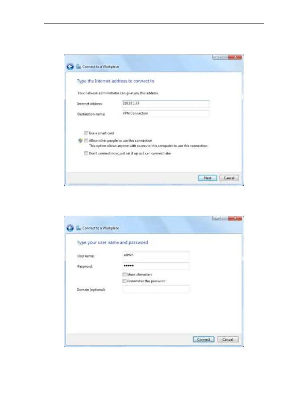 5. Enter the internet IP address of the router (for example: 218.18.1.73) in the Internet address