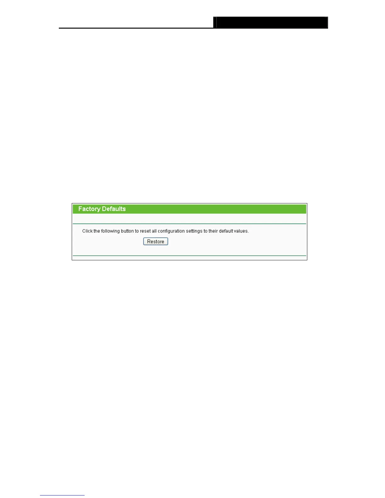 Choose menu “System Tools → Factory Defaults”, and you can restore the configurations of