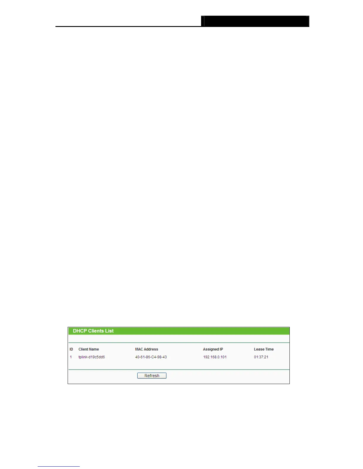 Assigned IP and Lease Time for each DHCP Client attached to the device (Figure 6-21).