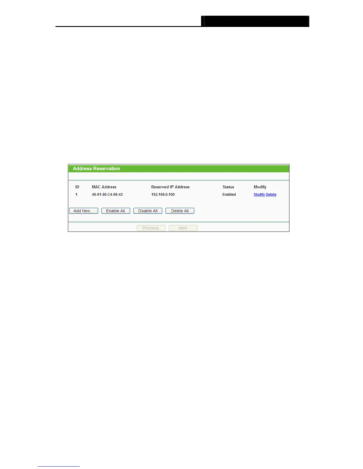 MAC Address - Here displays the MAC address of the PC for which you want to reserve an