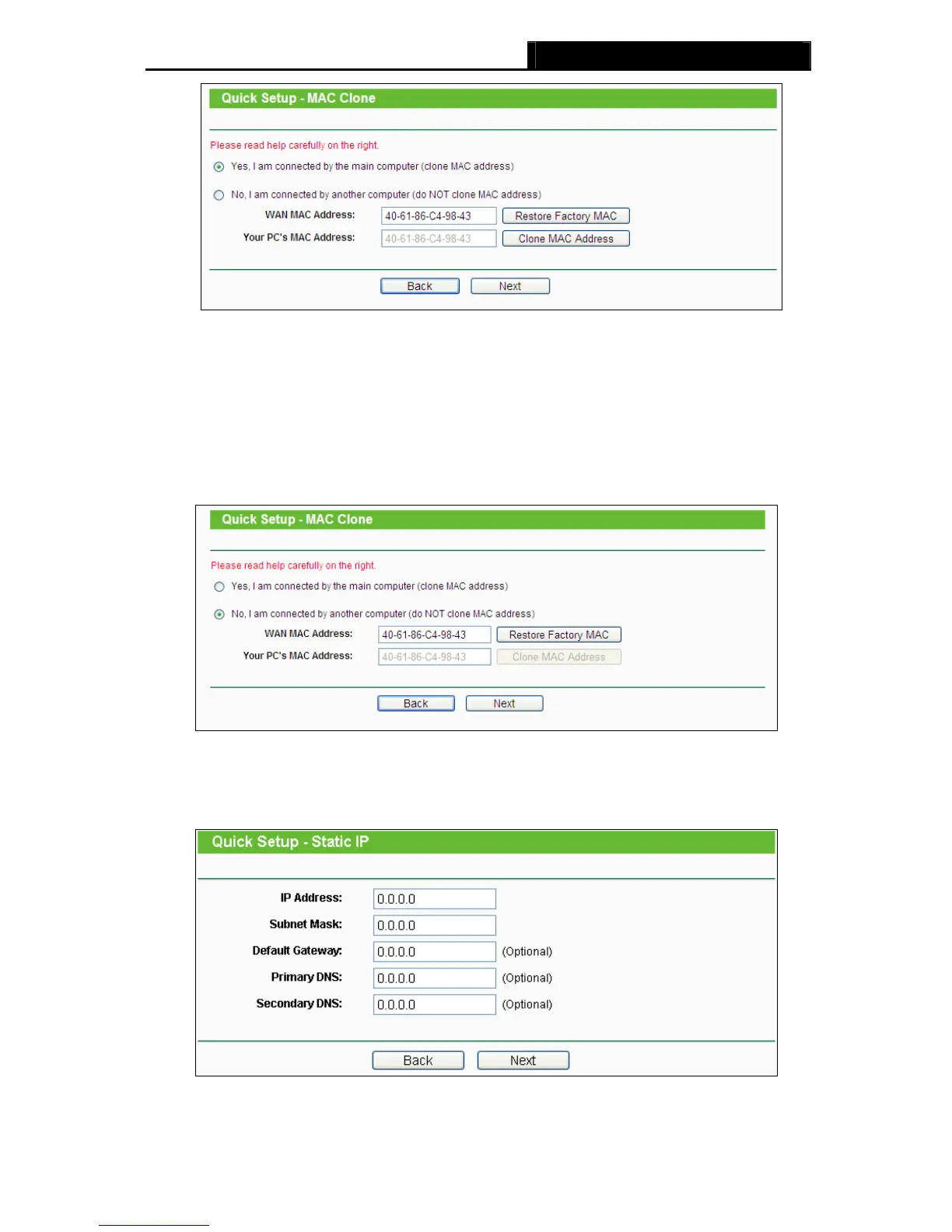 If the connection type detected is Static IP, the next screen will appear as shown in