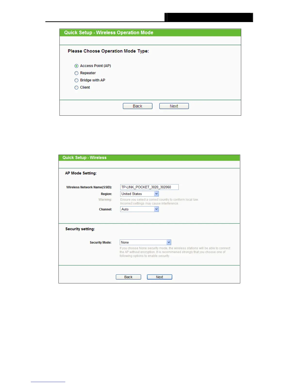 Figure 3-22 Quick Setup – Wireless Operation Mode