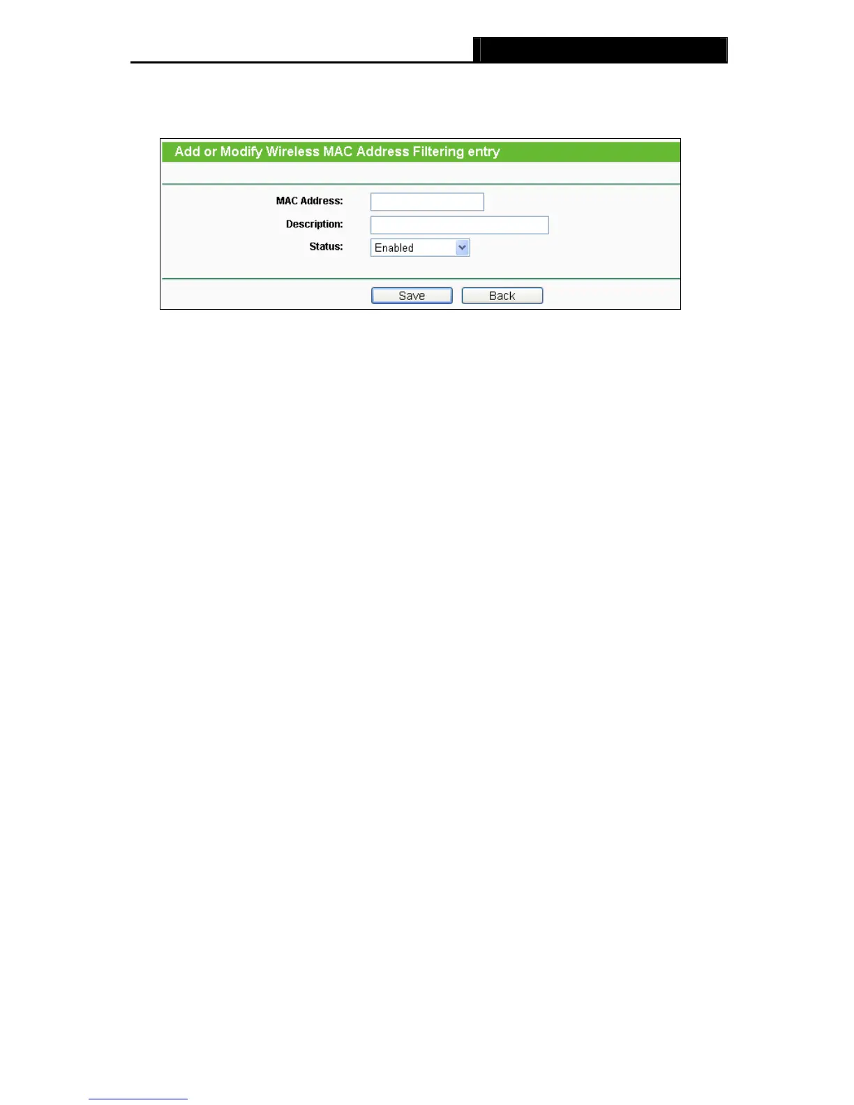 Modify Wireless MAC Address Filtering entry" page will appear, shown in Figure 4-29: