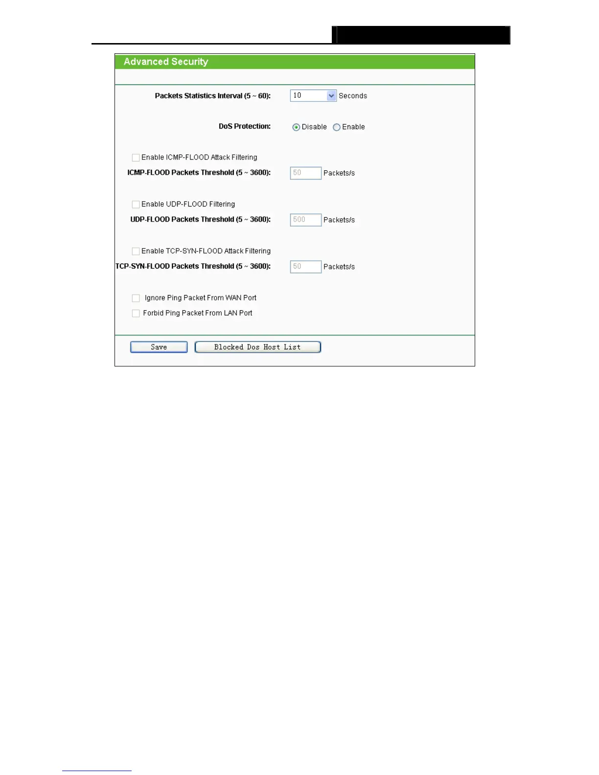 Packets Statistics Interval (5~60) - The default value is 10. Select a value between 5