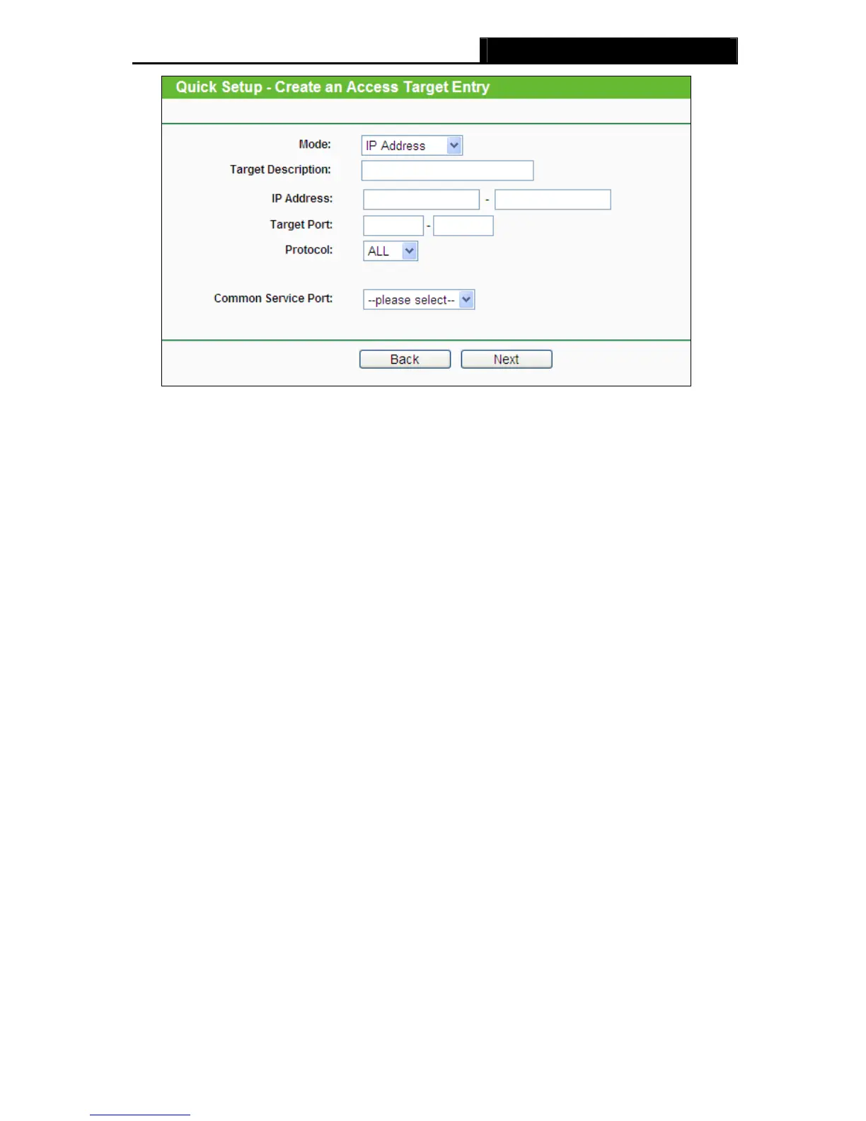 automatically. For example, if you select "FTP", "21" will be filled in the Target Port