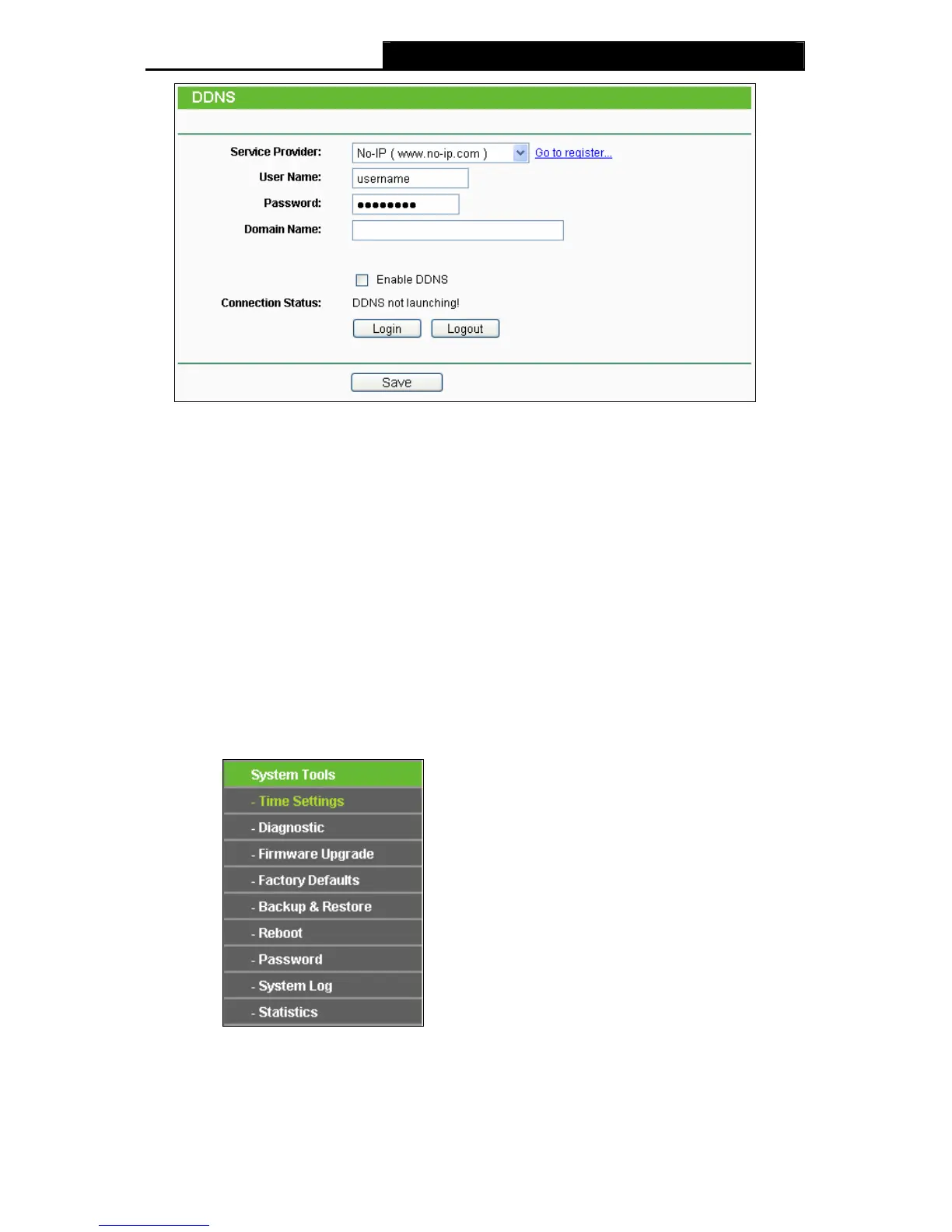 Connection Status - The status of the DDNS service connection is displayed here.