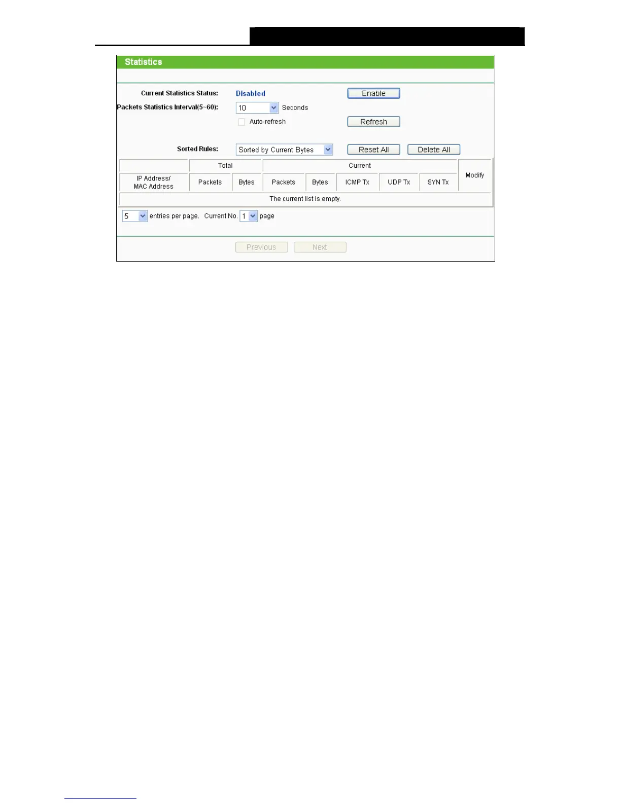 ¾ Current Statistics Status - Enable or Disable. The default value is disabled. To enable,