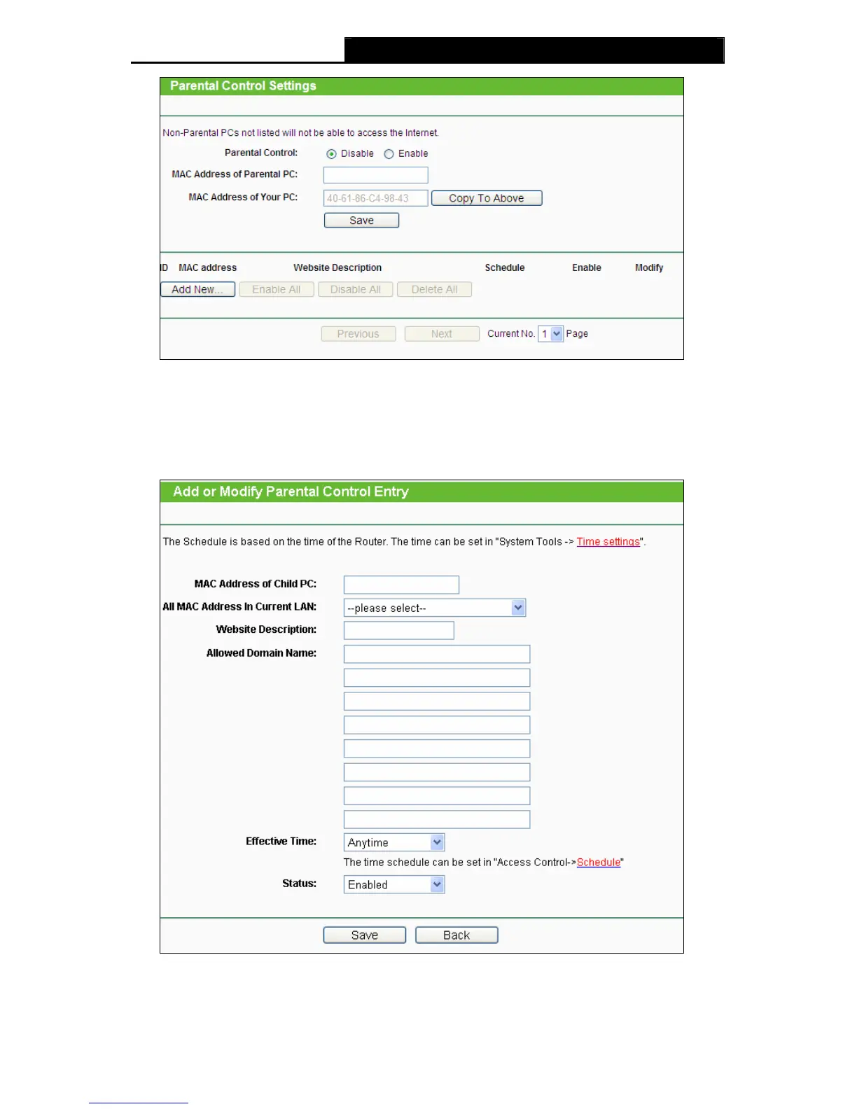 Figure 5-44 Add or Modify Parental Control Entry