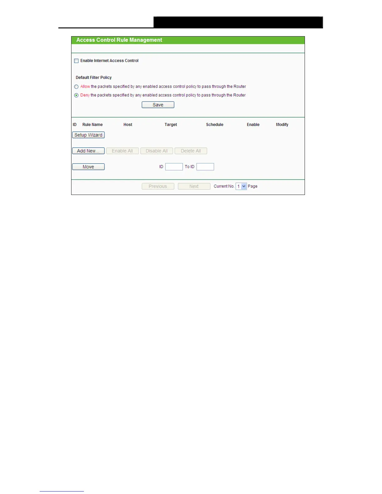 ¾ Disable All - Click the Disable All button to disable all the rules in the list.