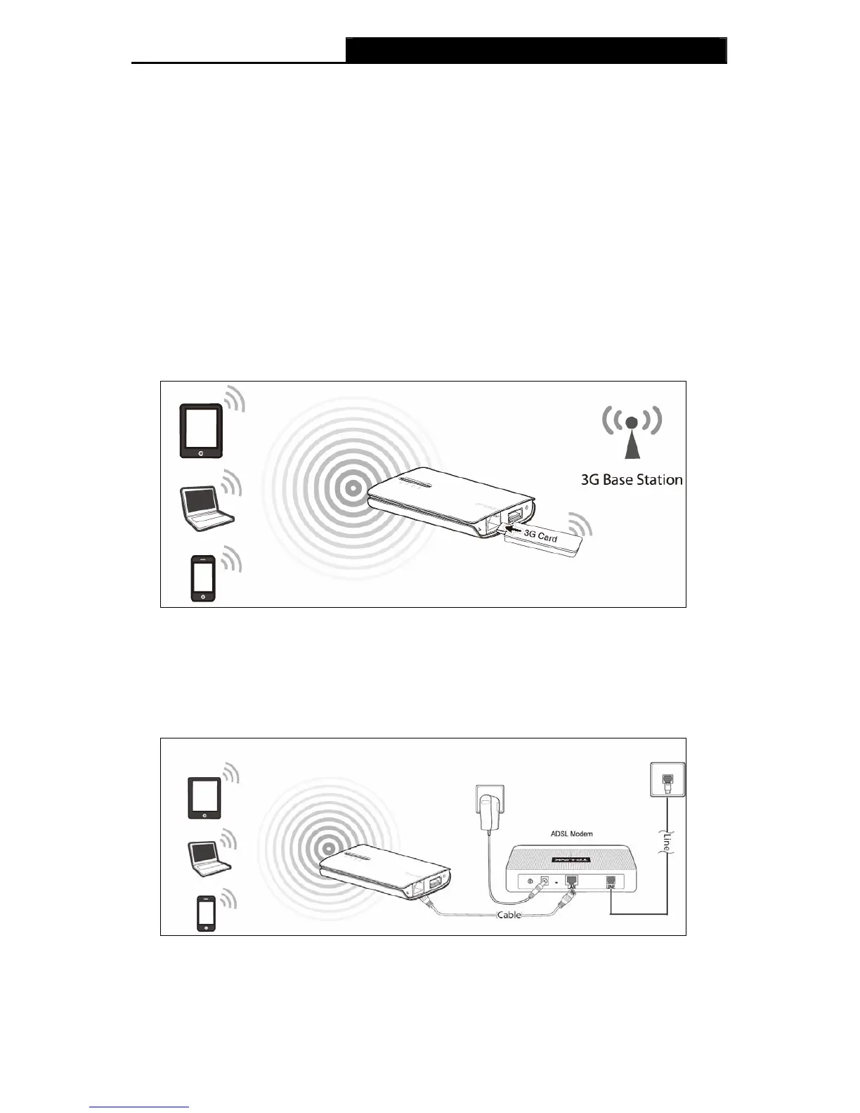 Computers/WiFi Phone/Tablet PC could connect to the Internet. In this mode, the only wired