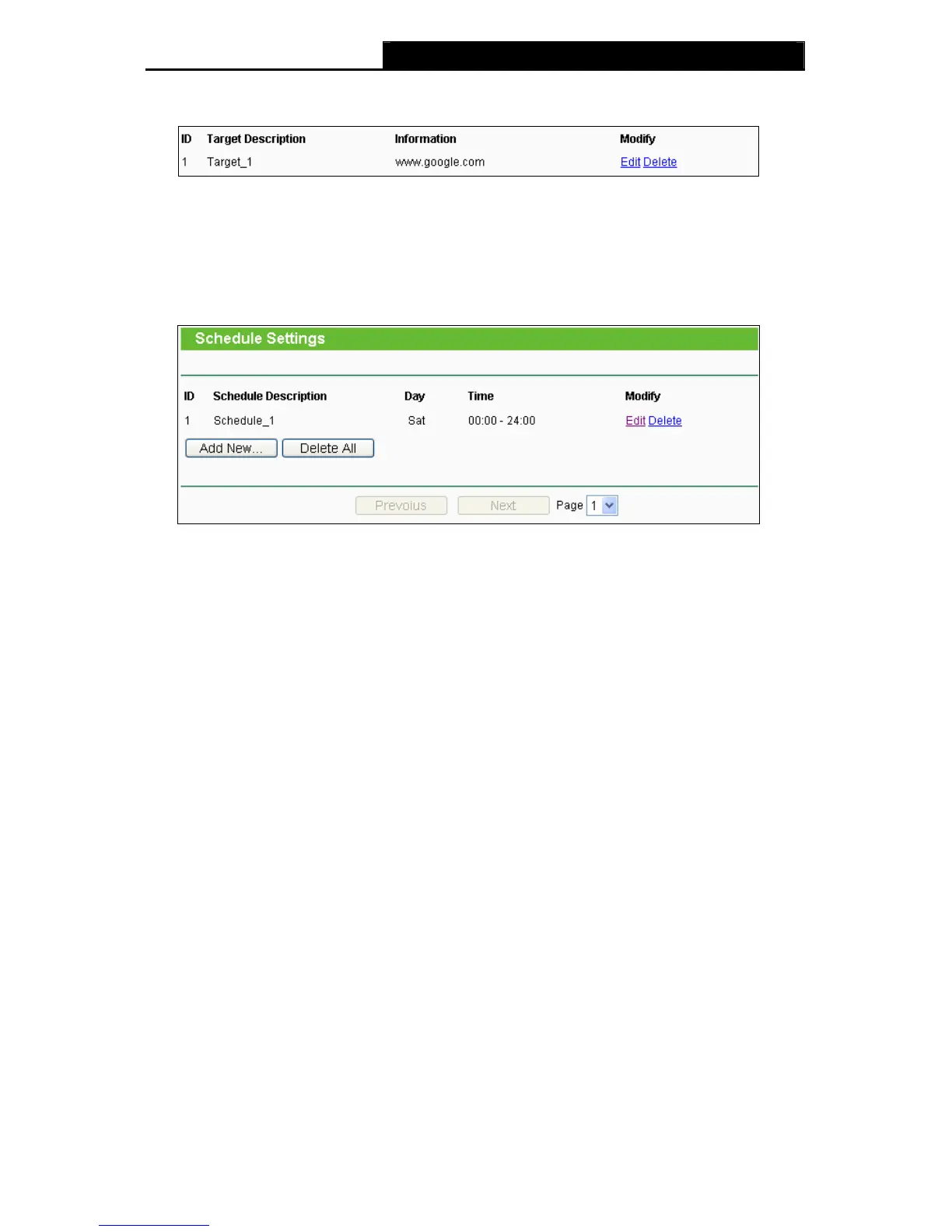 Click the Delete All button to delete all the entries in the table.