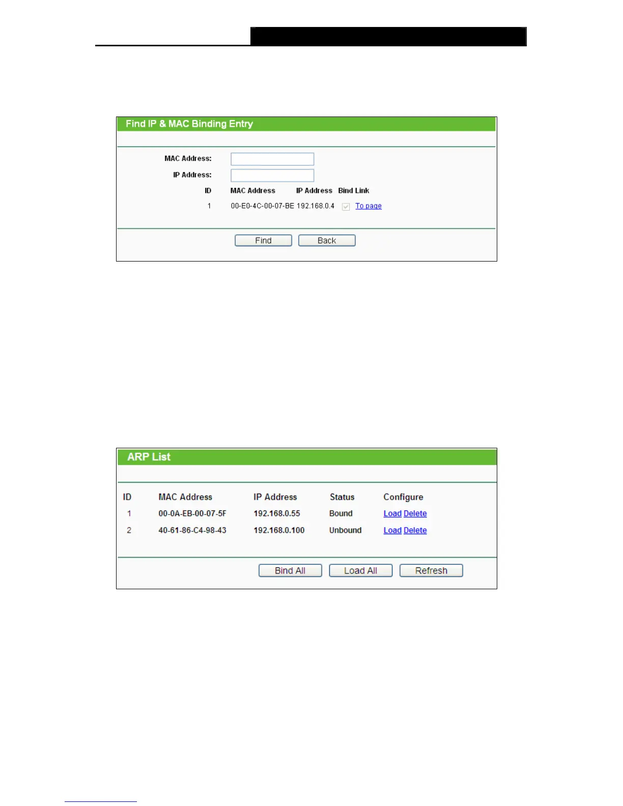 3. Status - Indicates whether or not the MAC and IP addresses are bound.