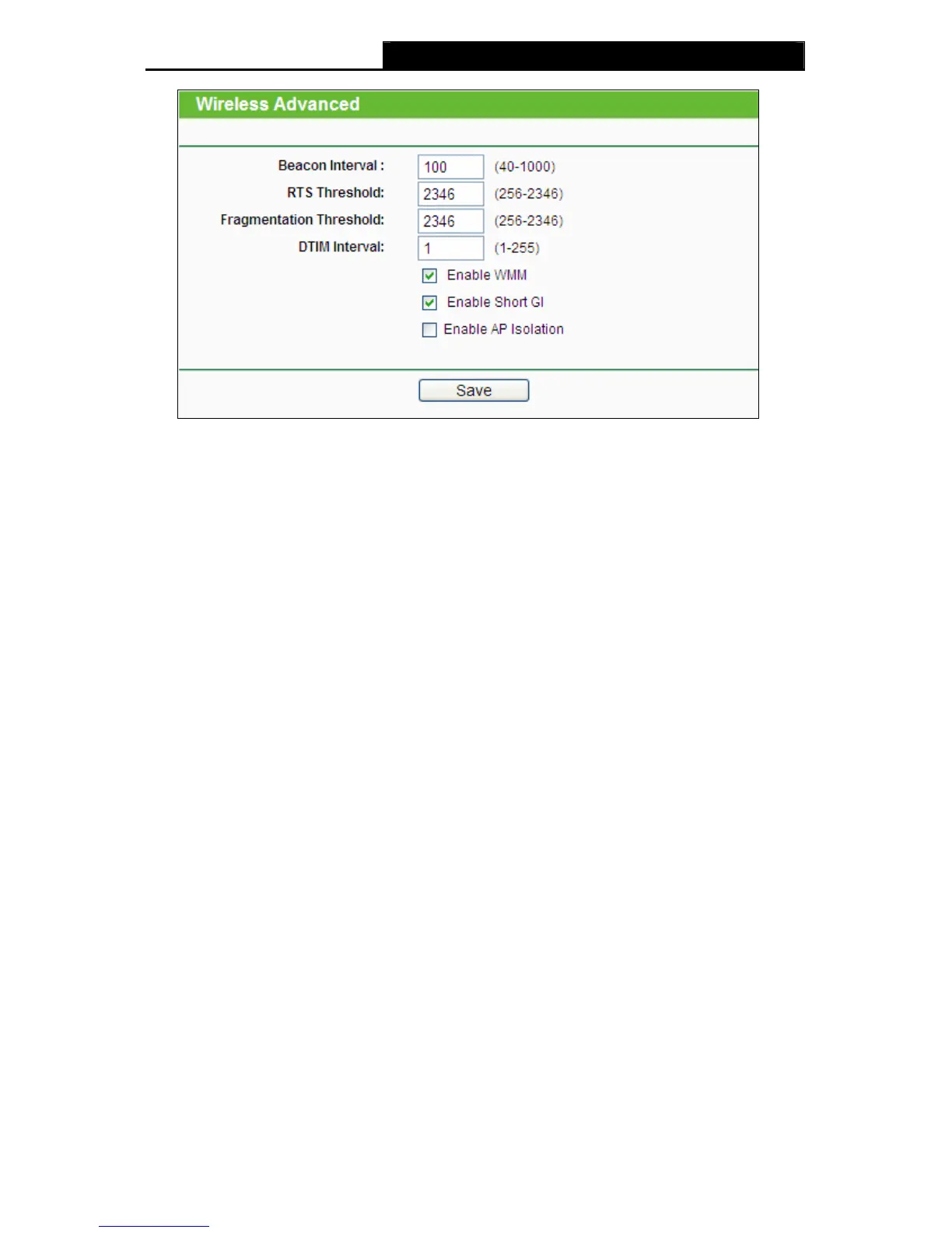 ¾ Enable Short GI - This function is recommended for it will increase the data capacity by
