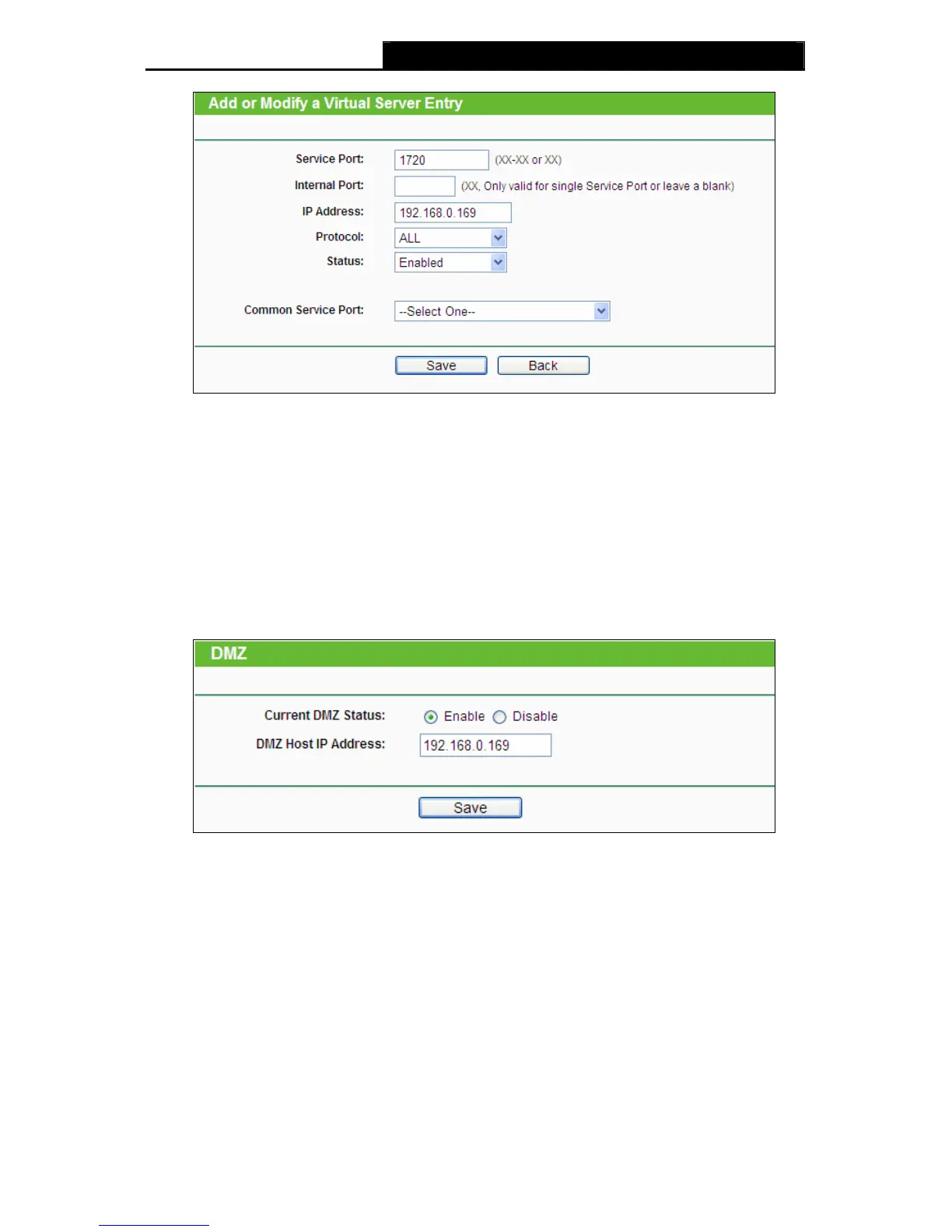 of your browser, and click "DMZ" submenu. On the "DMZ" page, click Enable radio