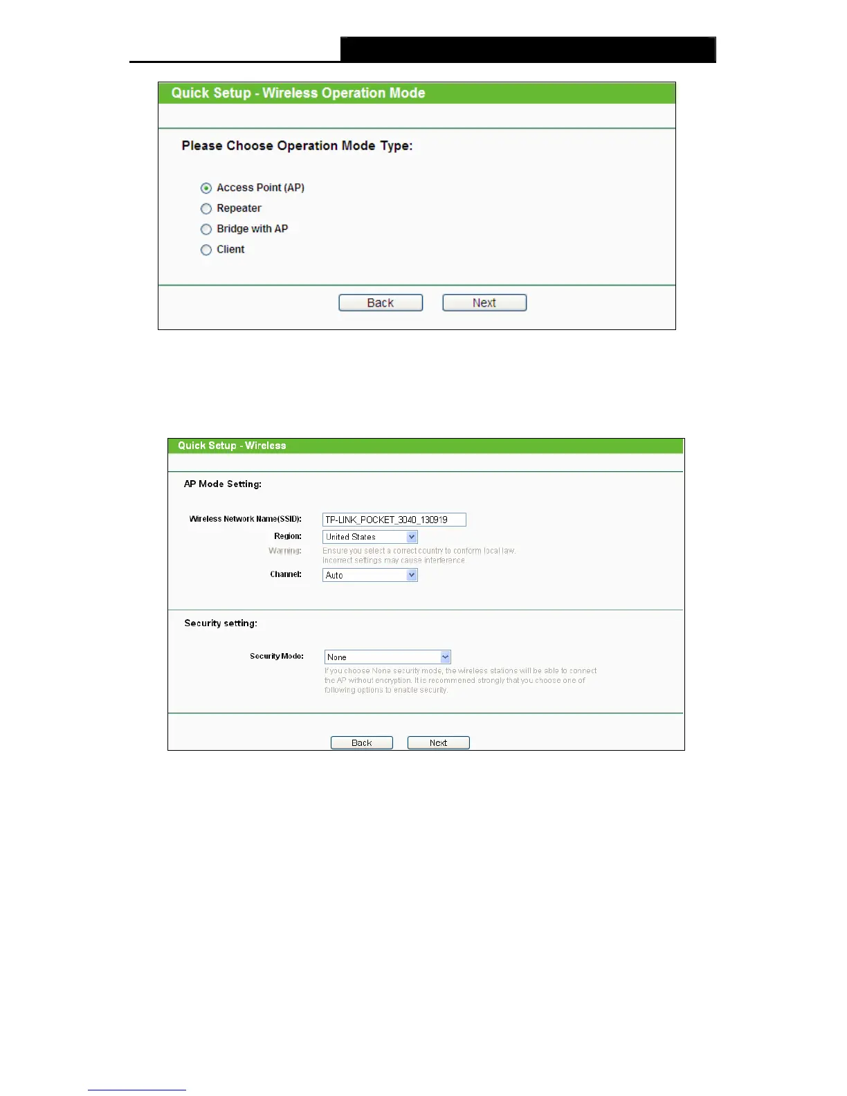 Figure 3-16 Quick Setup – Wireless Operation Mode