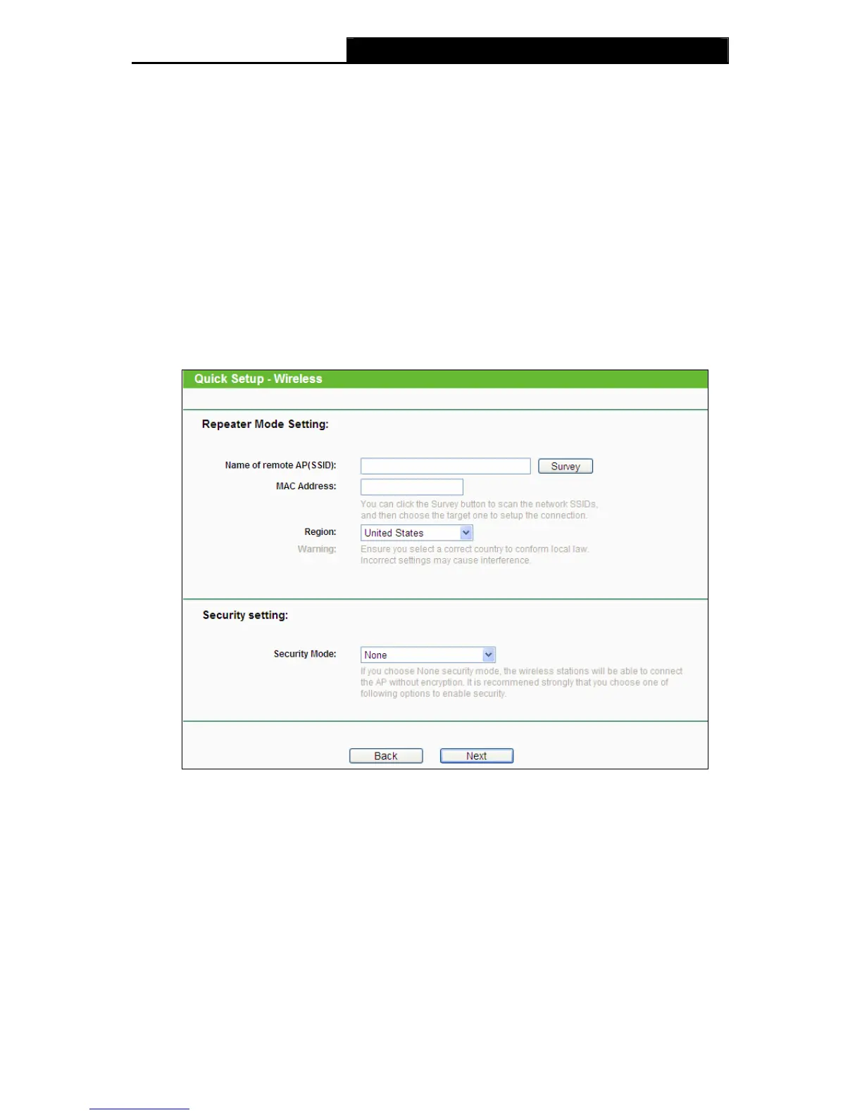 Figure 3-18 Quick Setup – Repeater