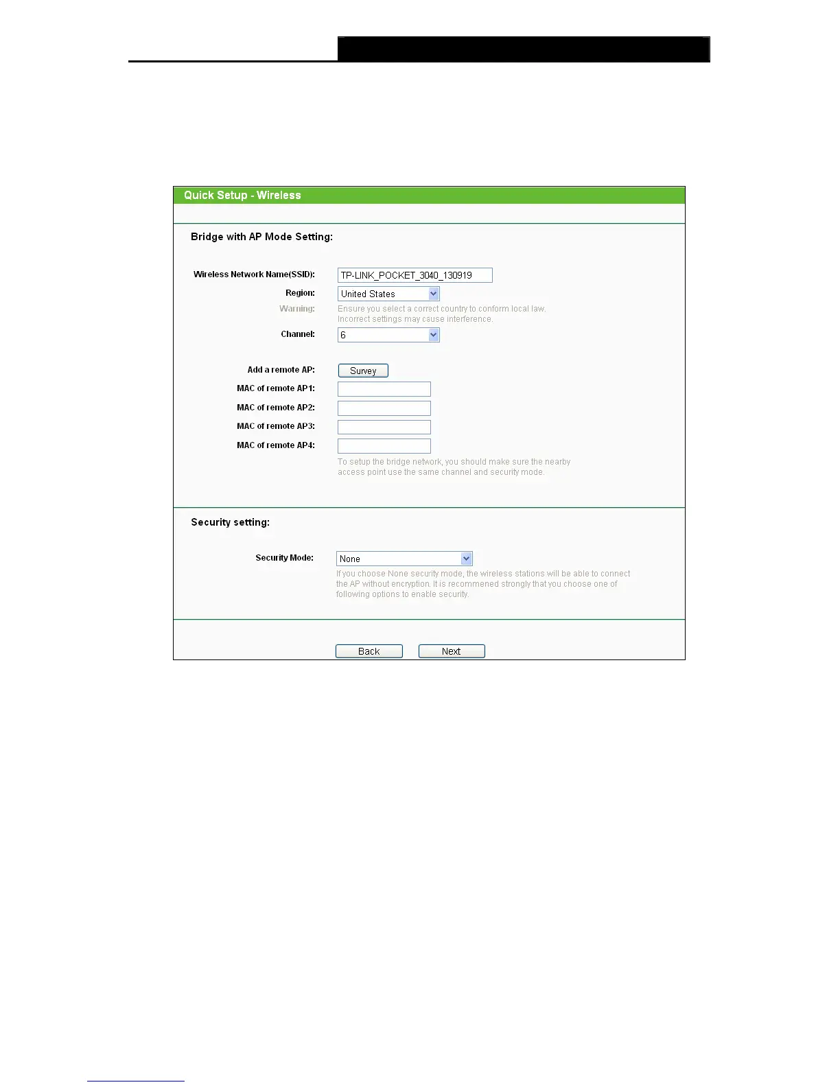 ¾ If you choose Bridge with AP, the next screen will appear as shown in Figure 3-19.