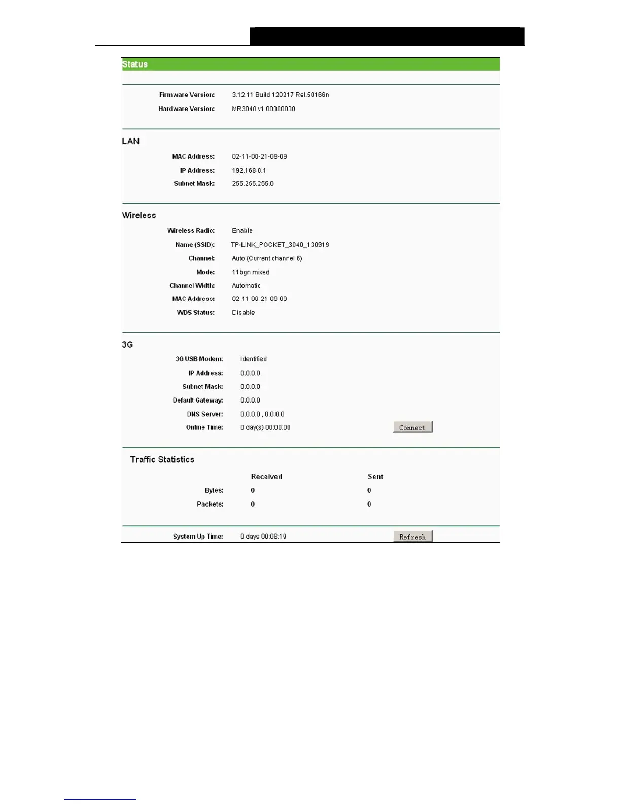 On this page, you can choose the operation mode of the Router. The default mode is 3G Router.