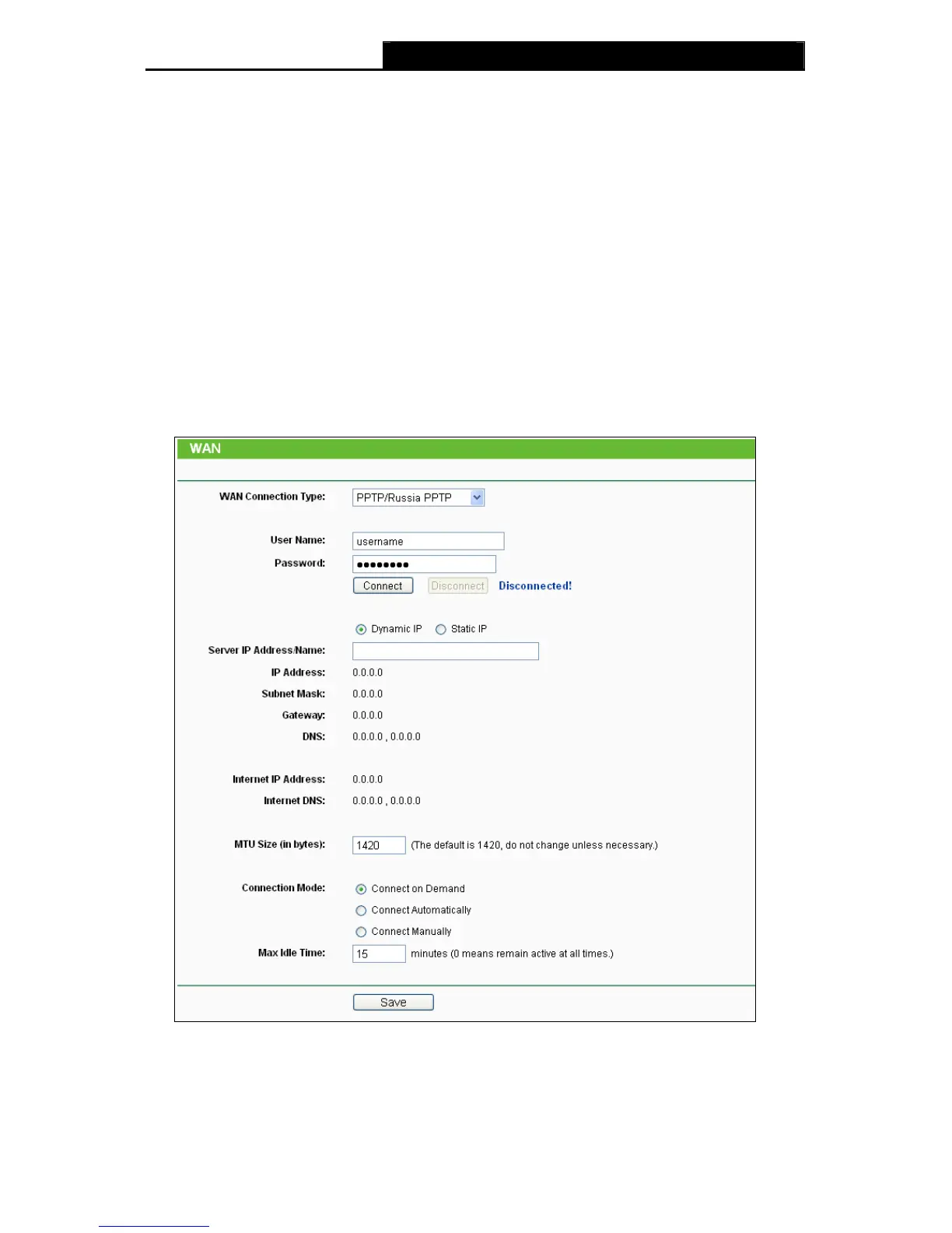 manually. After a specified period of inactivity (Max Idle Time), the Router will disconnect