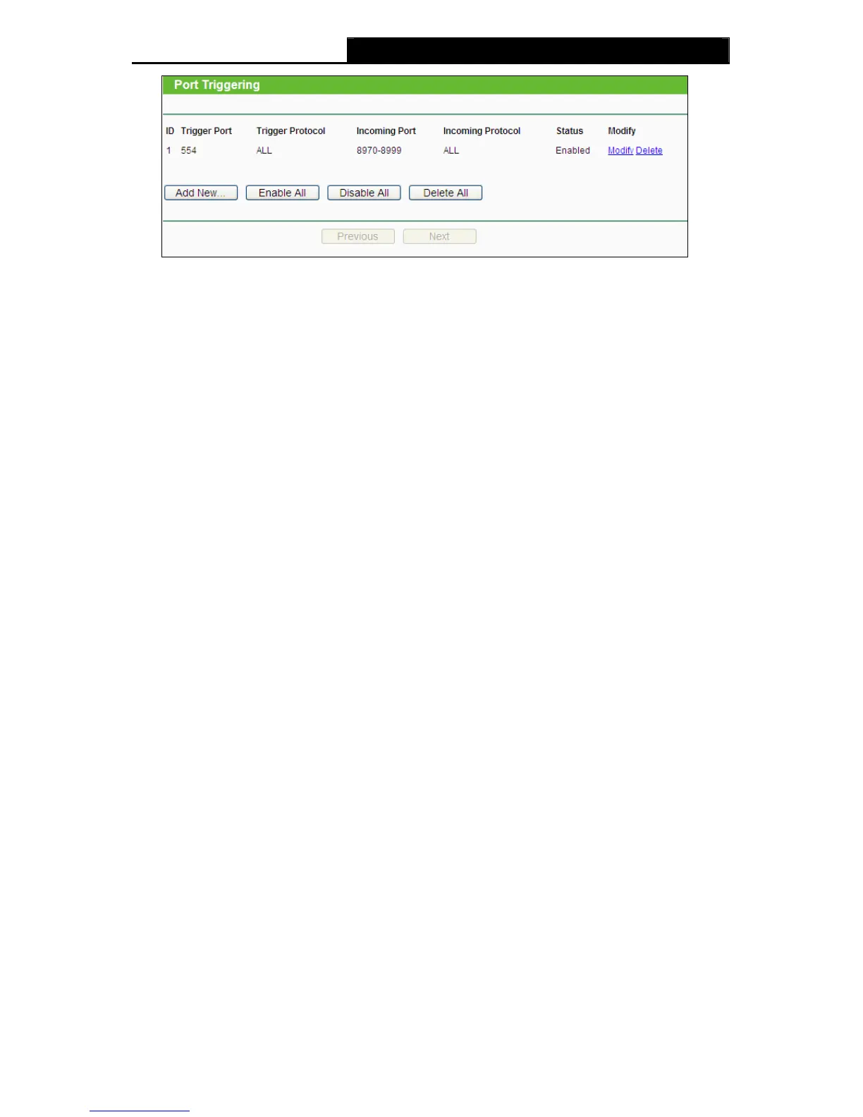 ¾ Trigger Protocol - The protocol used for Trigger Ports, either TCP, UDP, or All (all